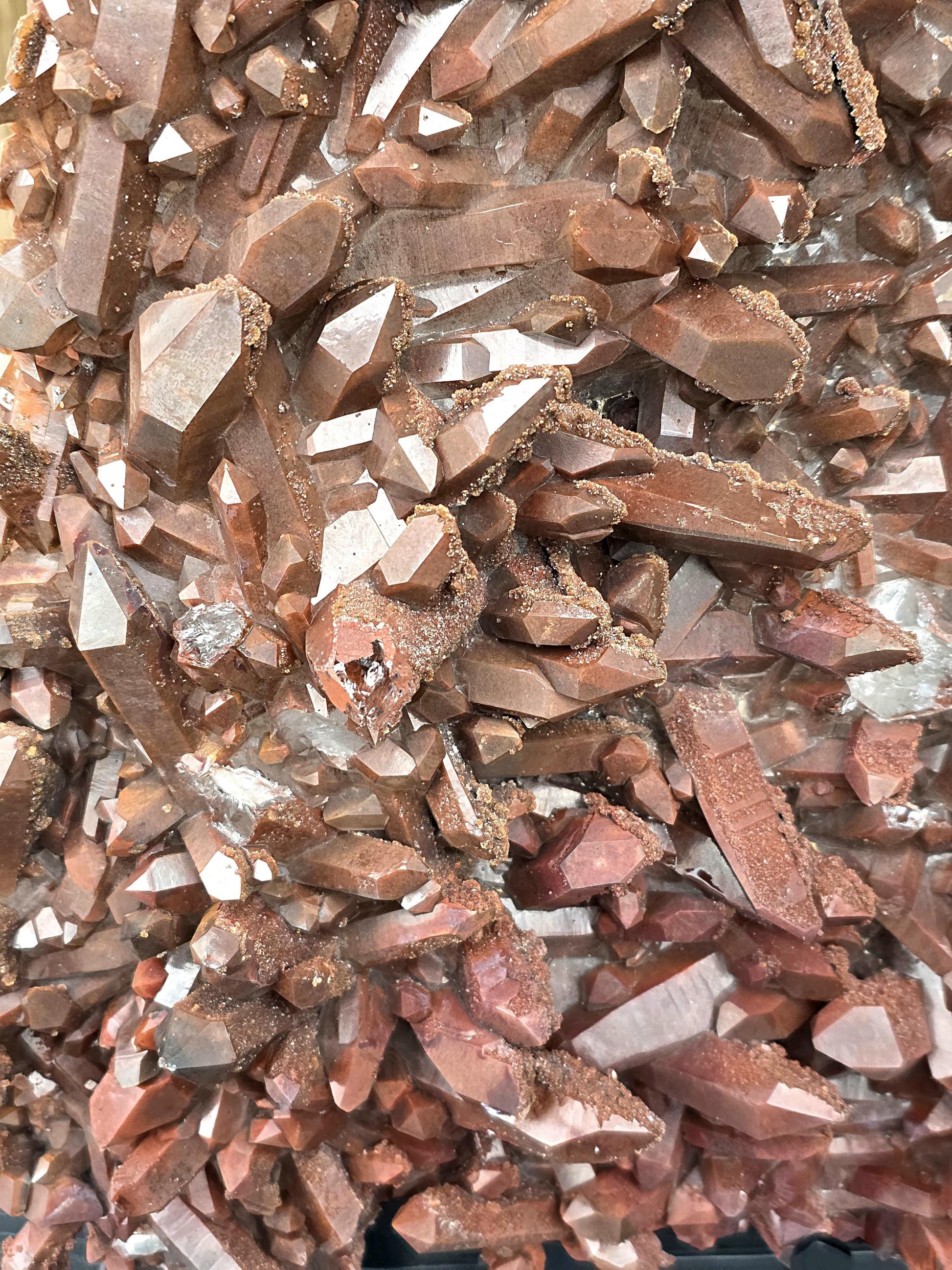 Each crystal gleams with warm iron-oxide hues, creating a bold and earthy texture that captures light from every angle. A museum-quality statement piece for collectors, designers, or anyone who appreciates the raw beauty of nature.