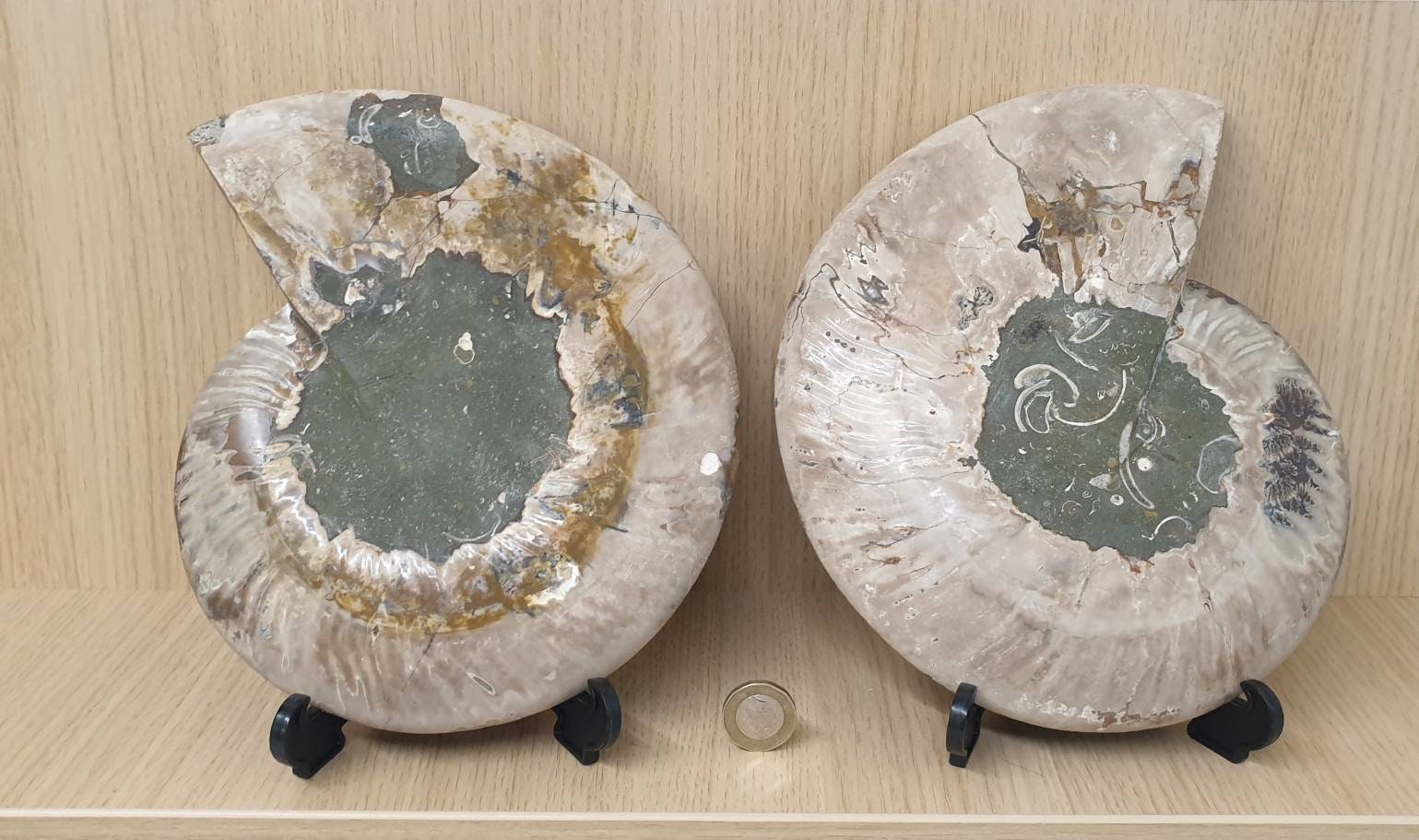 Ammonite Fossil PairSize : 23 x 2.5 x 19 cm approx. (sizes taken from one half) Ammonite cut and polished of exceptional quality