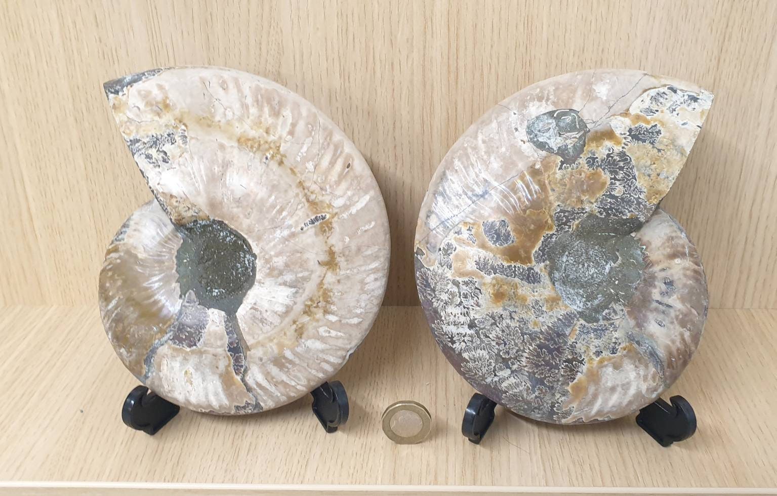 Ammonite Fossil PairSize :   17.5  x  1.8  x  14  cm  approx.  (sizes taken from one half)      Ammonite cut and polished of exceptional quality