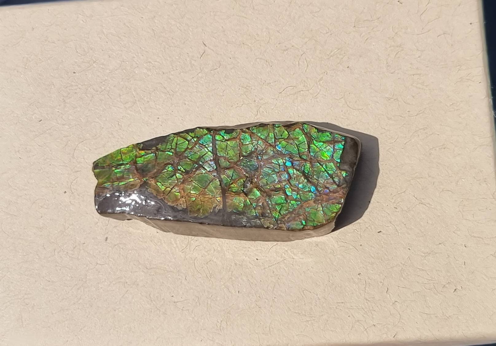 Natural Ammolite Gemstone Size : 4 x 0.5 x 2 cm approx.Location : Canada You will receive the exact piece pictured, these are one sided pieces