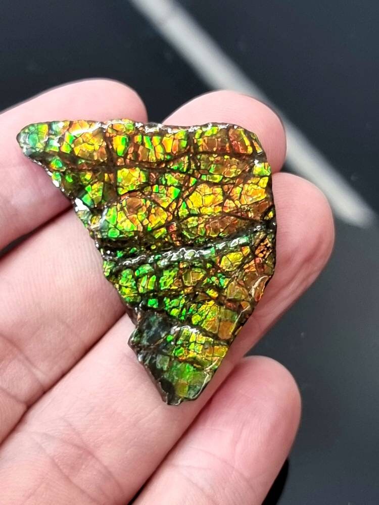 Natural Ammolite Gemstone Size : 4.5 x 0.5 x 3 cm approx.Location : Canada You will receive the exact piece pictured, these are one sided pieces