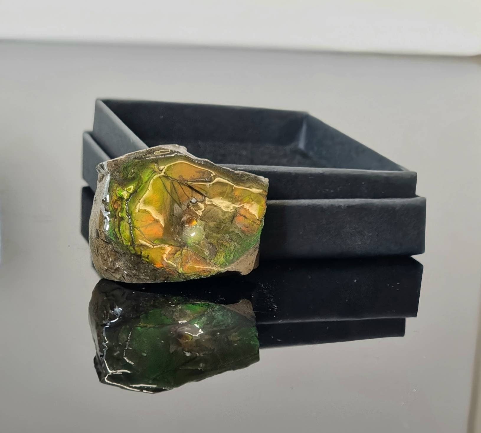Natural Ammolite Gemstone Size : 3.2 x 1 x 2.5 cm approx.Location : Canada You will receive the exact piece pictured, these are one sided pieces