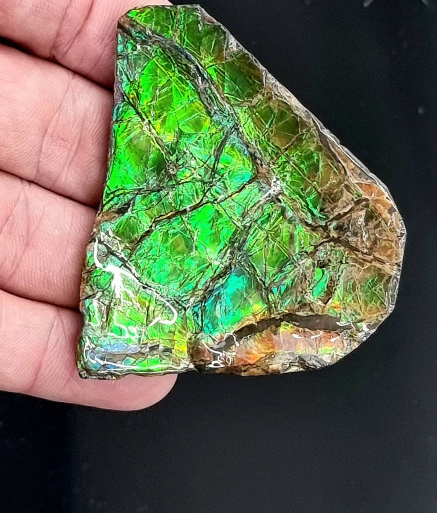 Natural Ammolite Gemstone Size : 6.5 x 0.6 x 5.5 cm approx.Location : Canada You will receive the exact piece pictured, these are one sided pieces