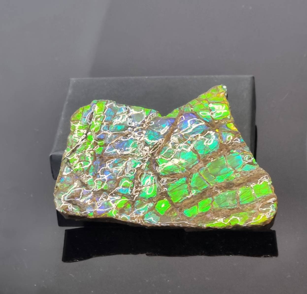 we have a large range of website only pieces available also From the largest active Ammolite mine in the world and collected just east of the Rock Mountains in the upper Bearpaw formation which dates back approximately 71 million years,, these are natural pieces on original matrix which have been stabilised in resin to protect the fragile nature of the thin Ammolite layer. Known as the generation gemstone Ammolite is assured to be mined out in fewer than 20 years making all Ammolite pieces genuinely rare and great collectors pieces.You will receive the exact piece pictured Distinction ~ Excellence that sets someone or something apart from others