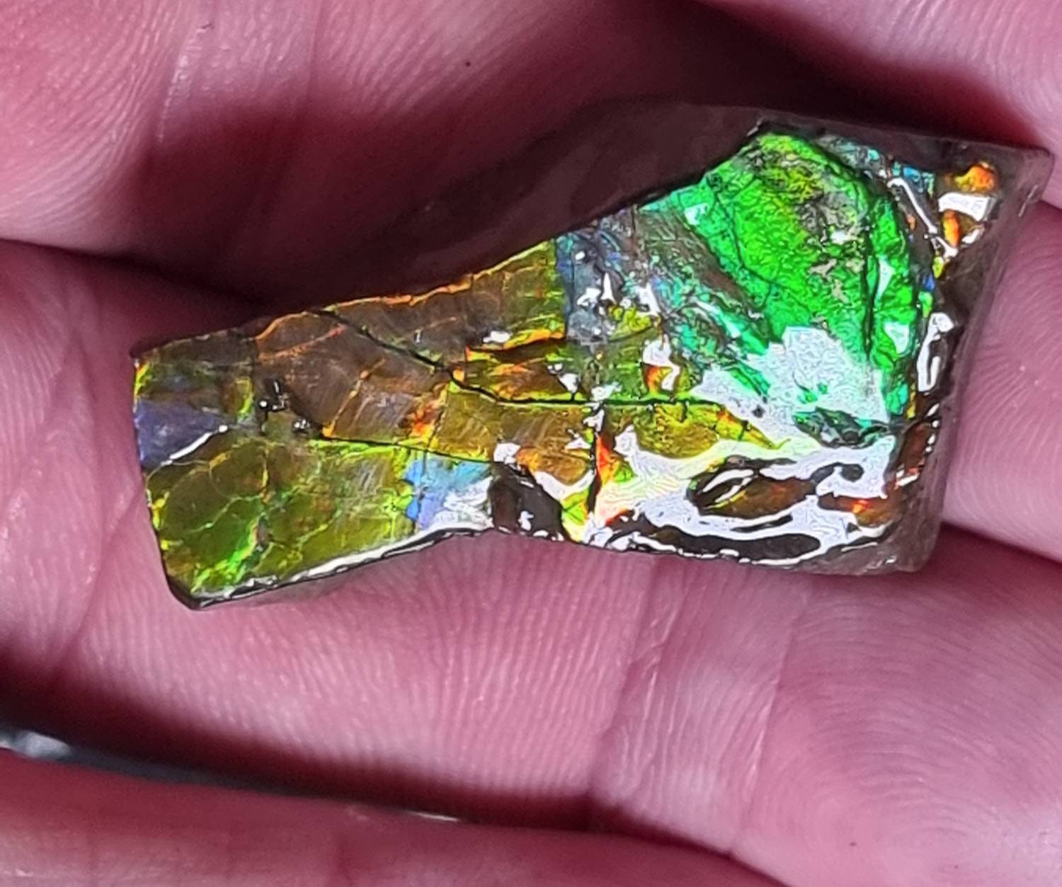 Natural Ammolite Gemstone Size : 3.3 x 1 x 1.5 cm approx.Location : Canada You will receive the exact piece pictured, these are one sided pieces