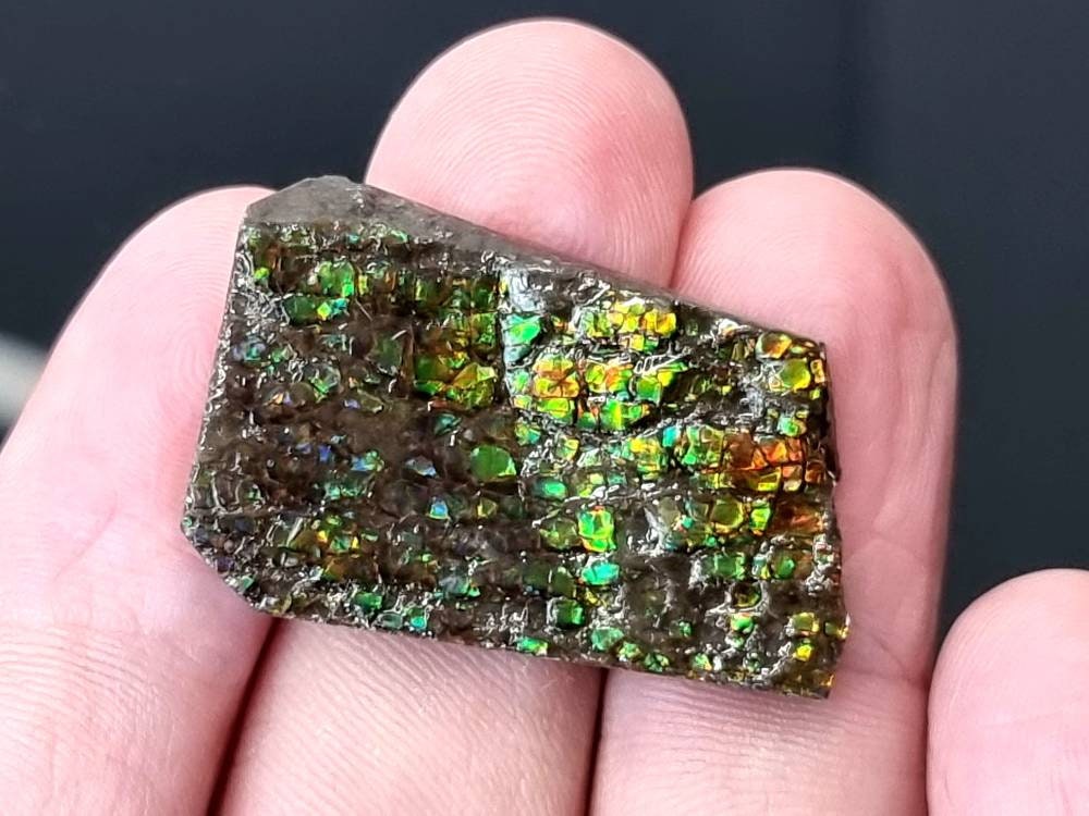 Natural Ammolite Gemstone Size : 3 x 0.5 x 2 cm approx.Location : Canada You will receive the exact piece pictured, these are one sided pieces