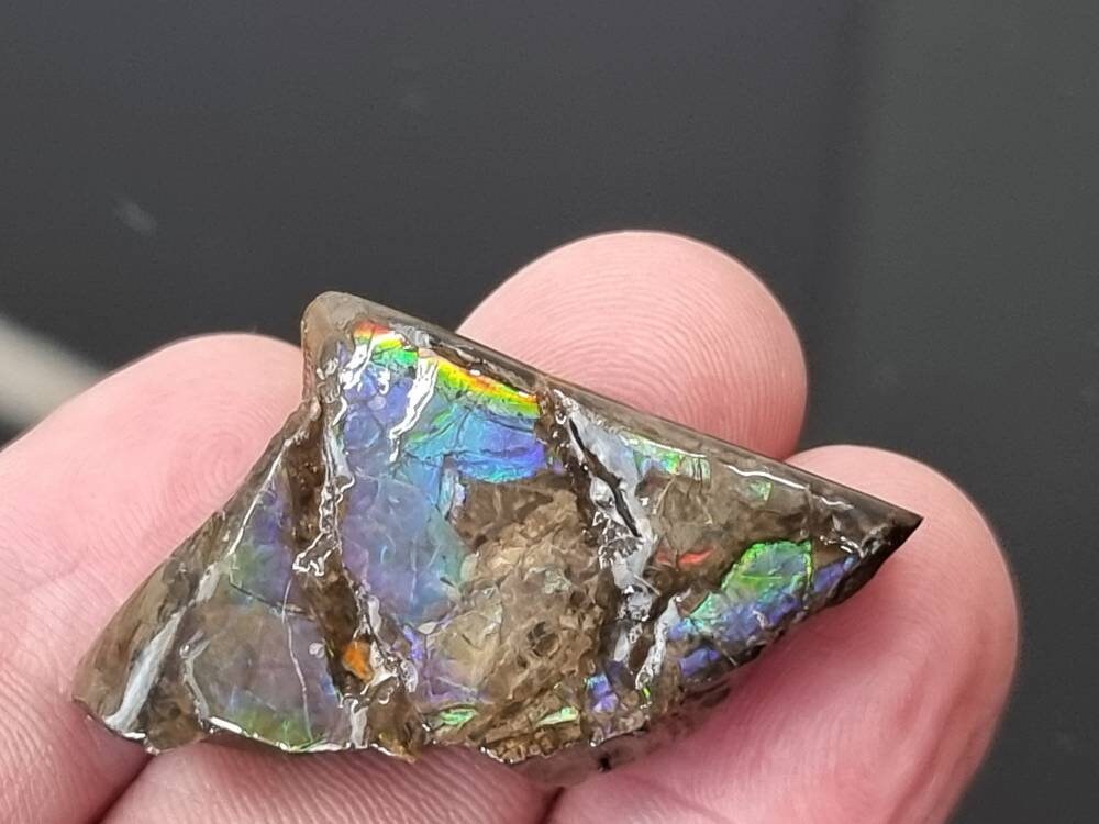 Natural Ammolite Gemstone Size : 3 x 1 x 2 cm approx.Location : Canada You will receive the exact piece pictured, these are one sided pieces