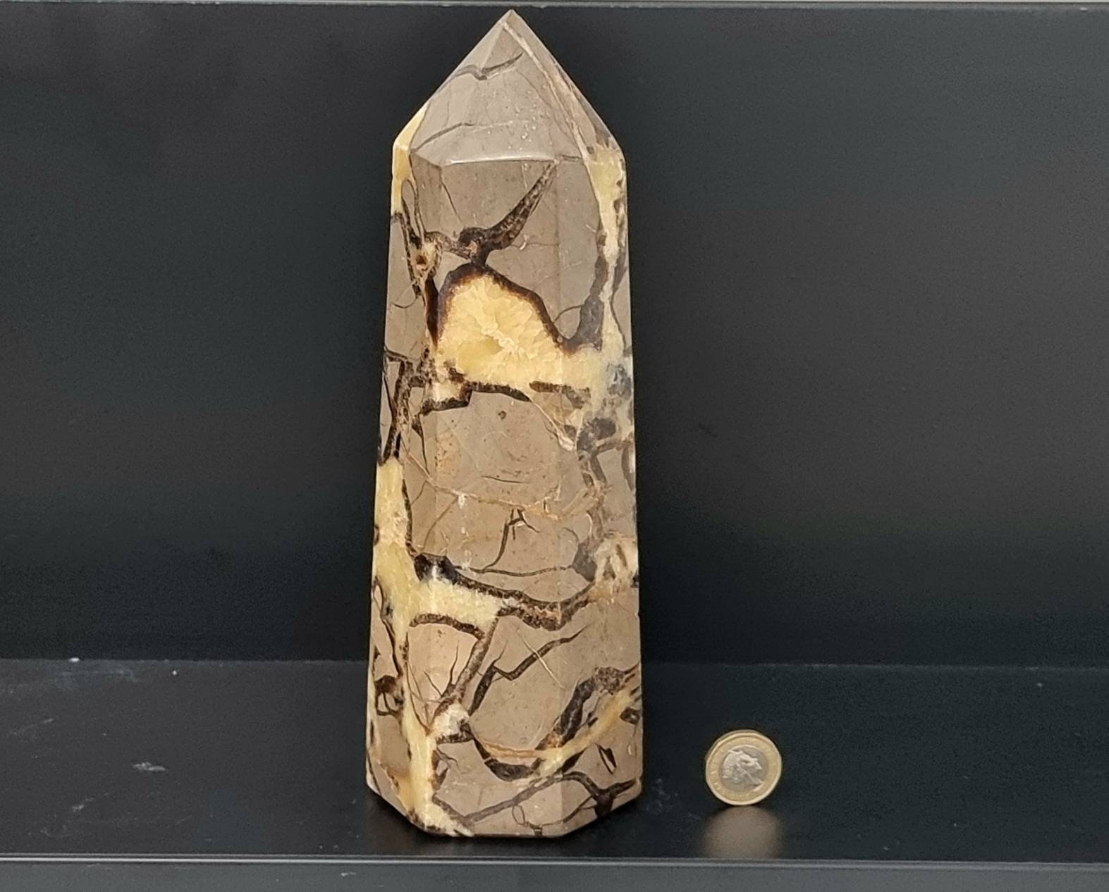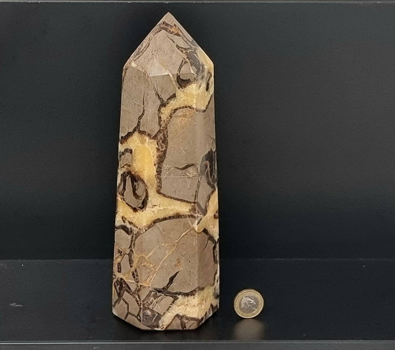 Yellow Septarian Septarian polished tower from Madagascar Hight : 23.5 x 8 cm approx.Weight : 1.76 KGhttps://www.etsy.com/uk/shop/DistinctionCrystals?ref=seller-platform-mcnav