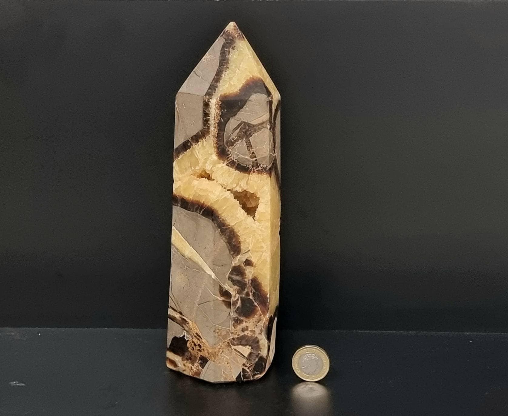 Yellow Septarian Septarian polished tower from Madagascar Hight : 22 x 7 cm approx.Weight : 1.44 KGhttps://www.etsy.com/uk/shop/DistinctionCrystals?ref=seller-platform-mcnav