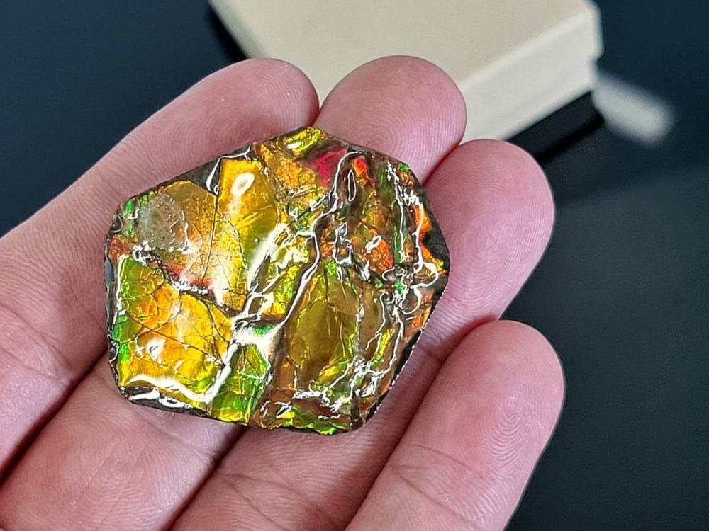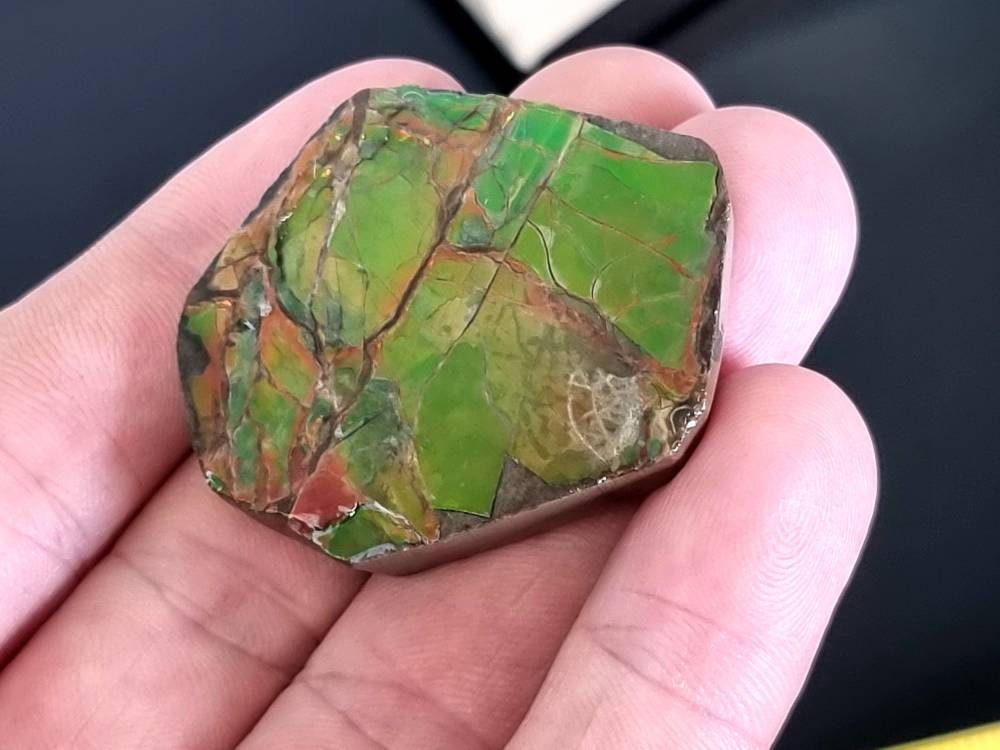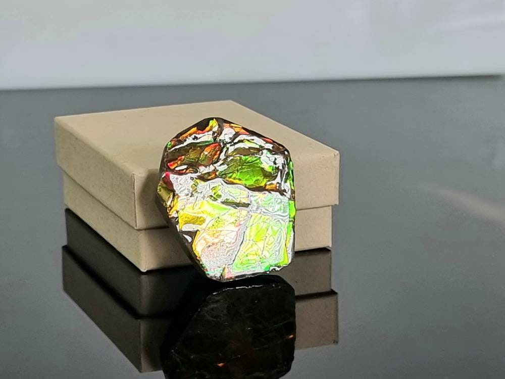Natural Ammolite Gemstone Size :   4.5  x  0.5  x  3.5  cm  approx.Location : Canada You will receive the exact piece pictured, these are one sided pieces