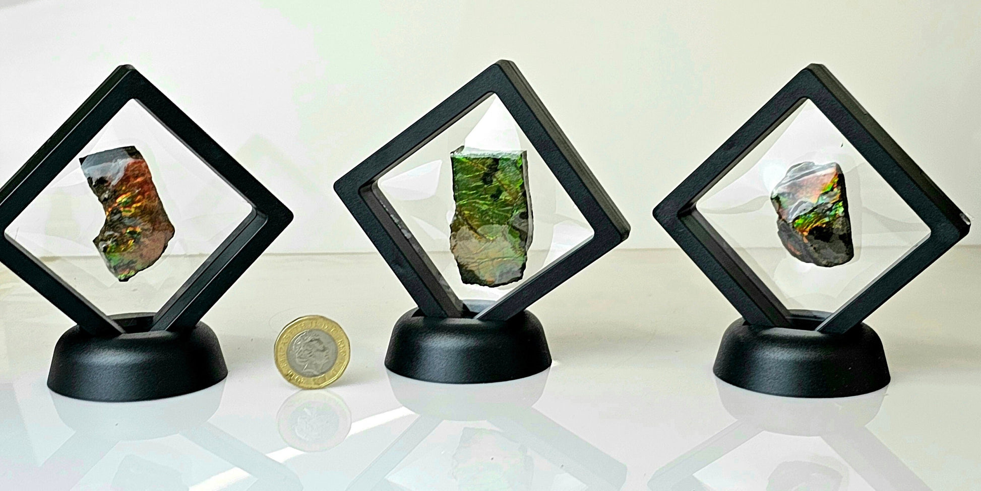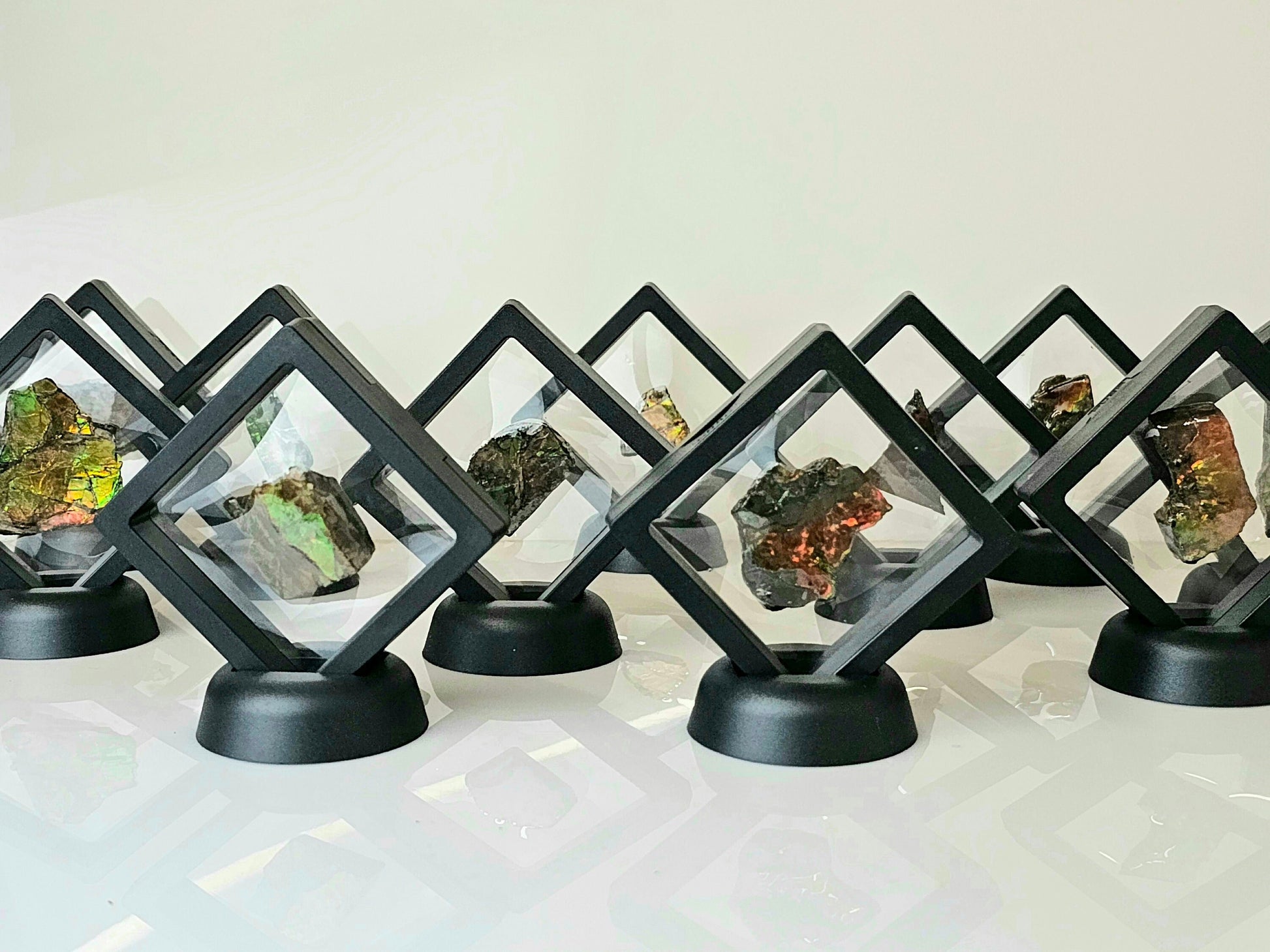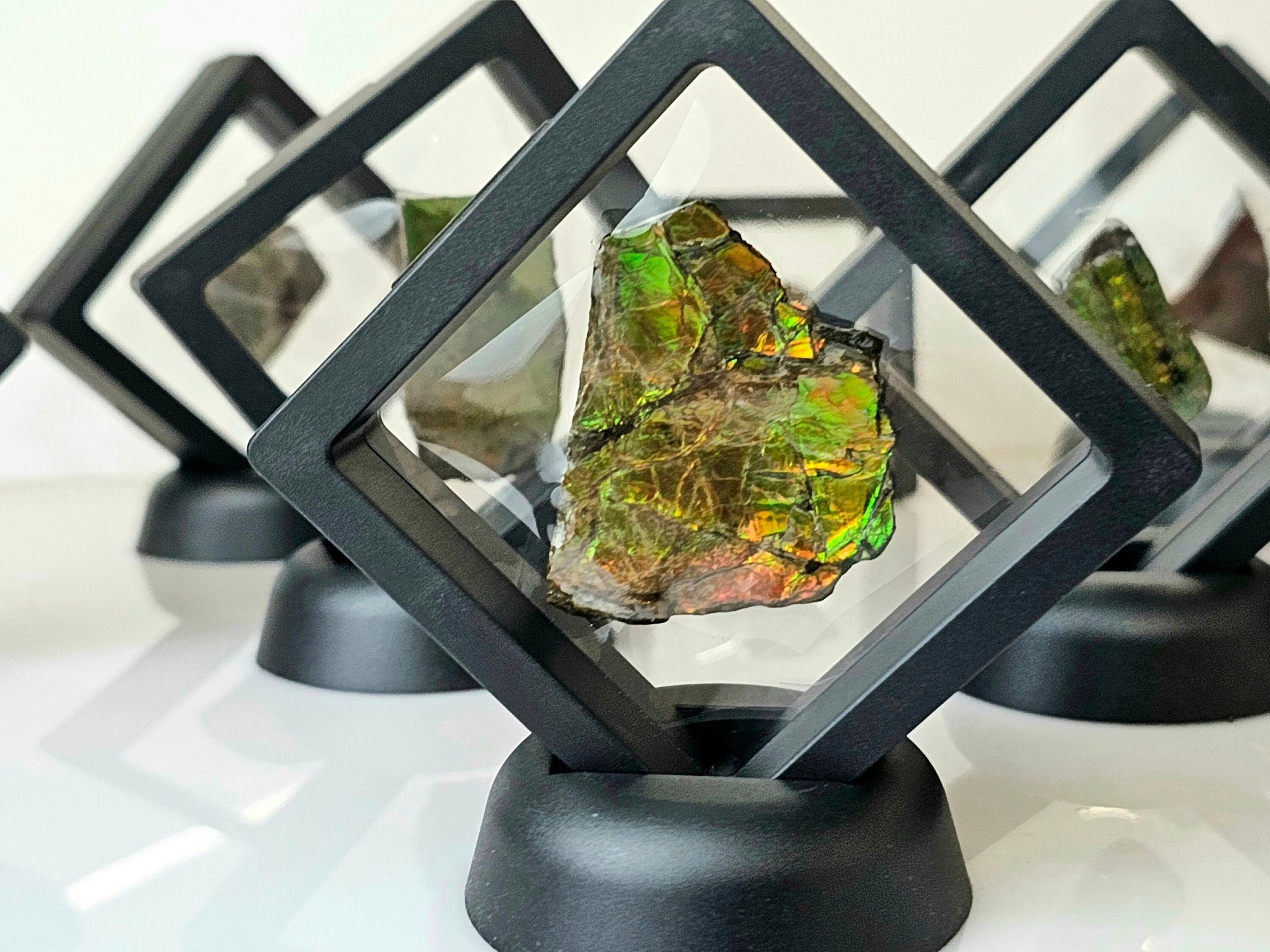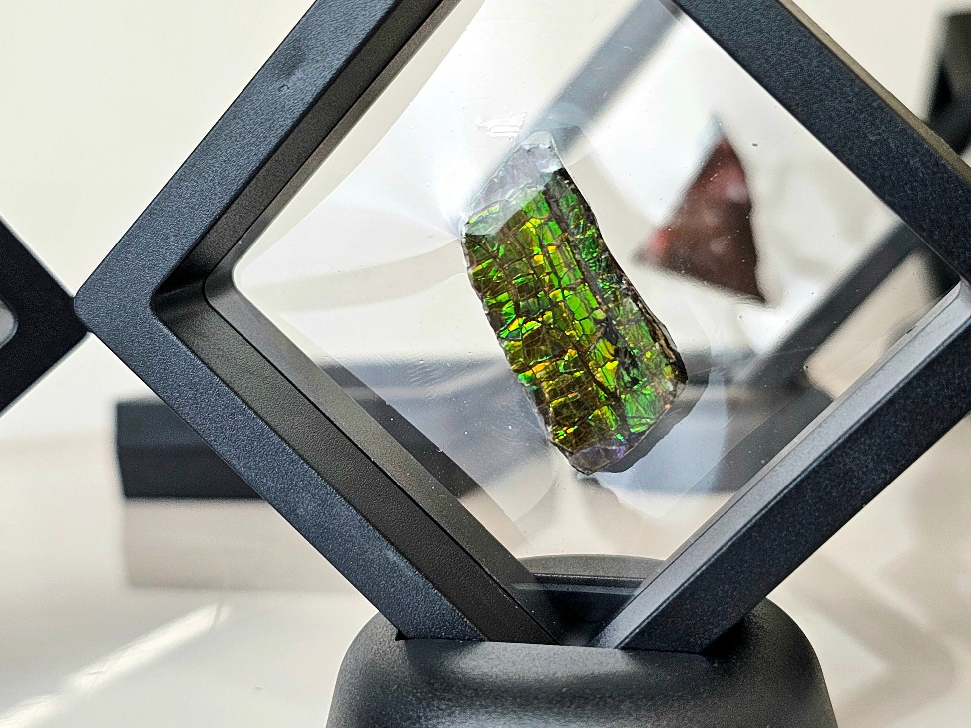 Natural Ammolite Gemstone In Display Case