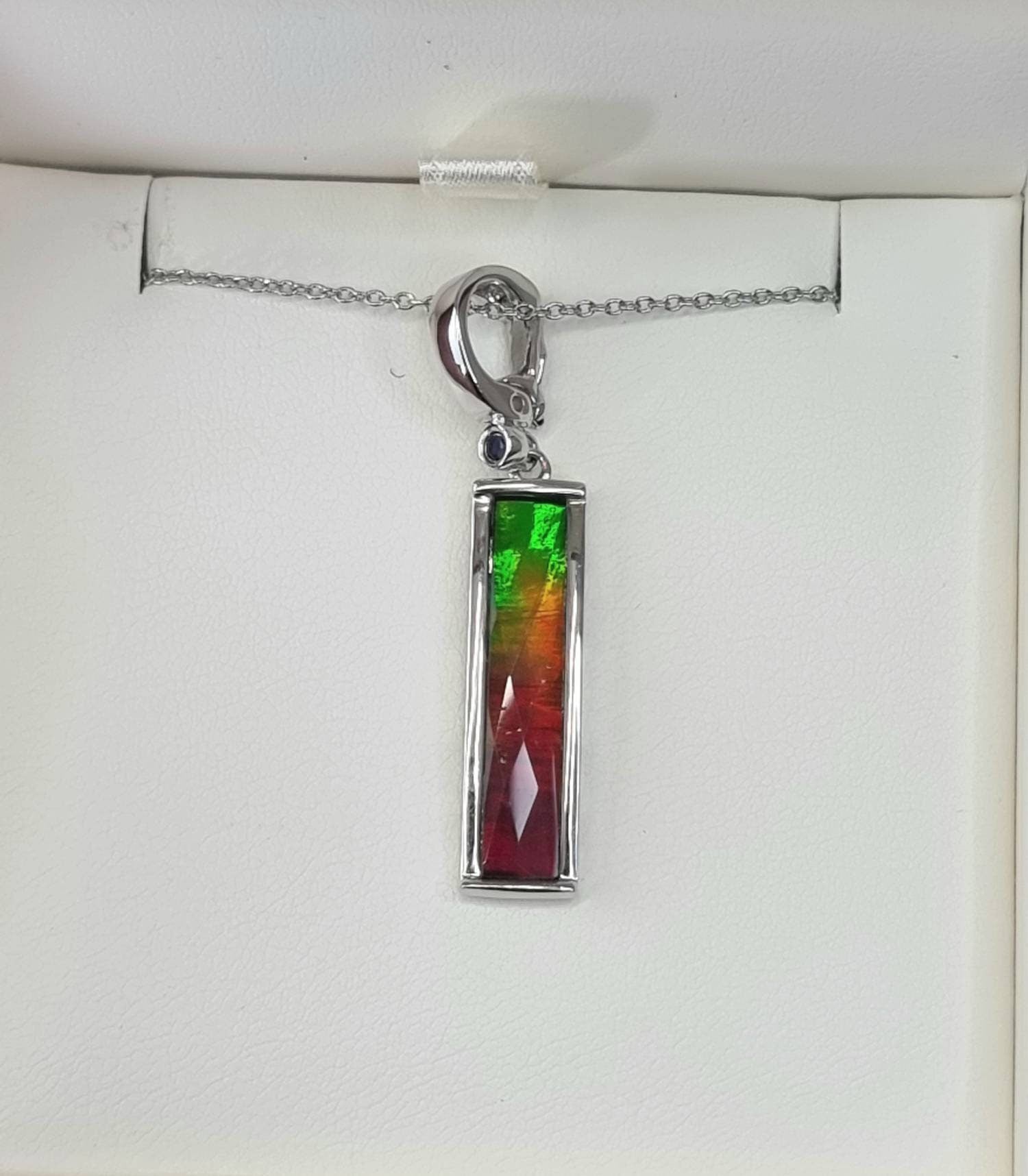 Ammolite Gemstone Necklace925 Silver Silver complete with chain and gift boxPendant size :  2.8 x 0.6 cm  approx.You will receive the exact piece pictured.