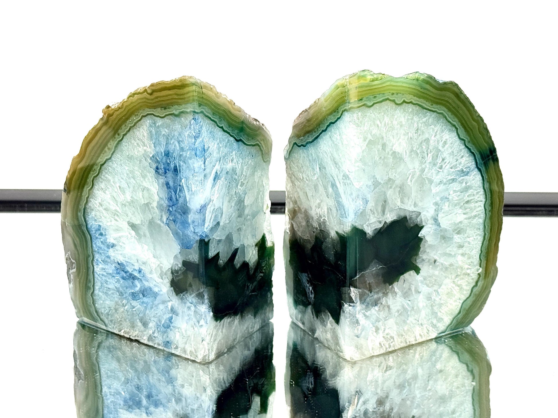 Blue Agate Crystal Bookends You will receive the exact pair pictured — a stunning, hand-polished set of Agate Bookends that blend natural beauty with modern design.📏 Details