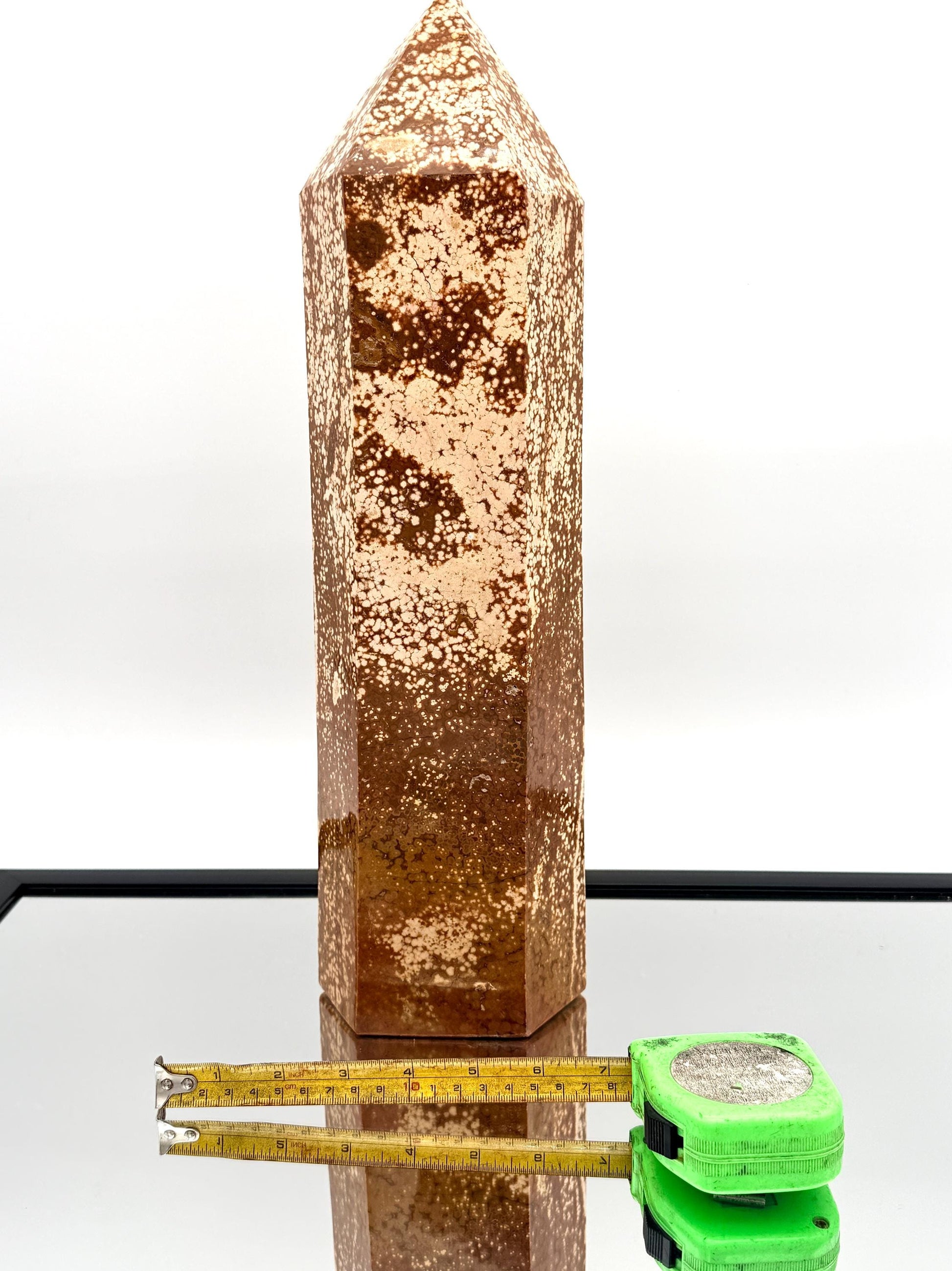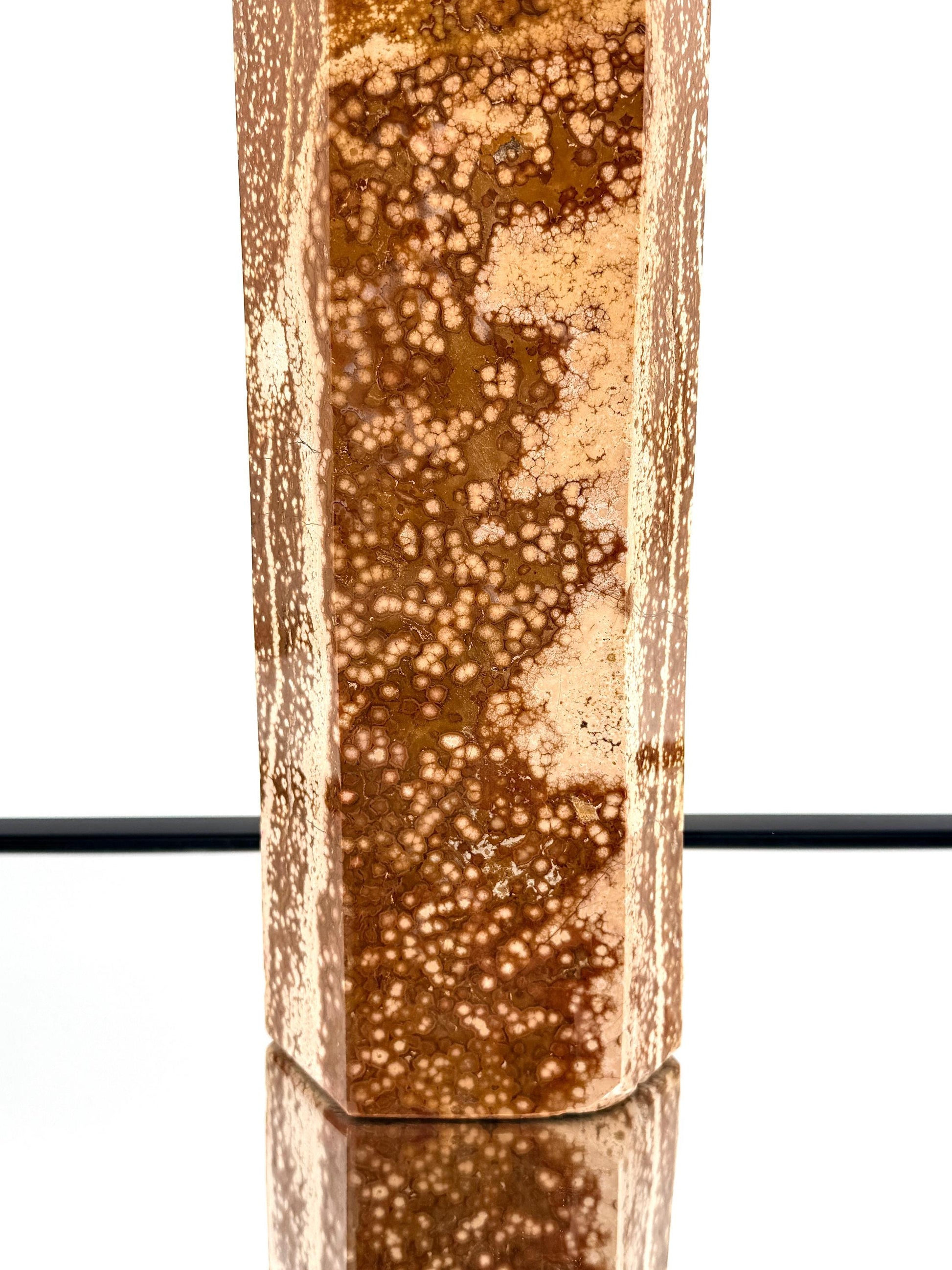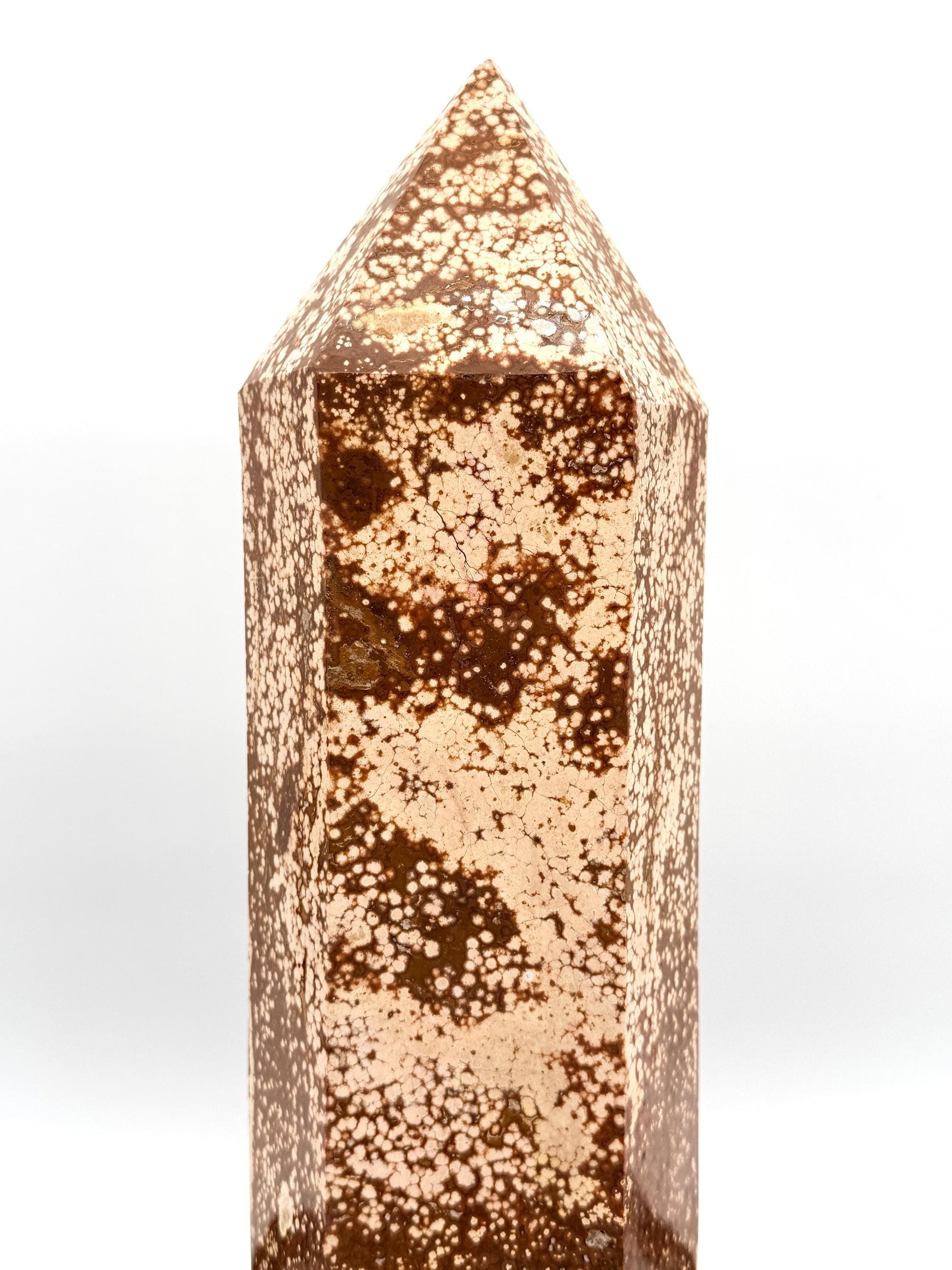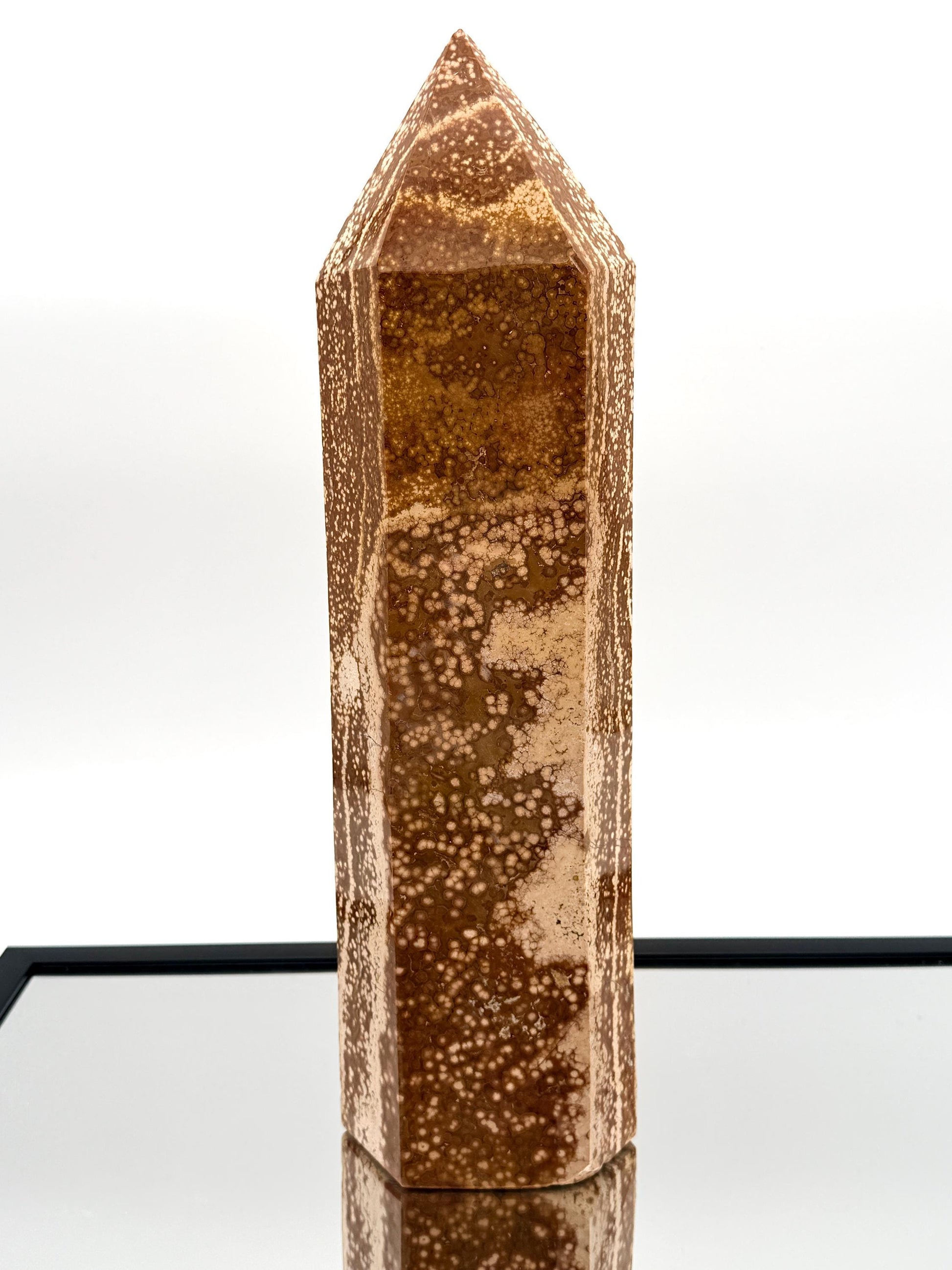 Exceptional Quality Large Ocean Jasper Crystal TowerSize: H 42.5 x 12 x 8.5 cmWeight: 7.15KGHand carved and polished from Madagascar.