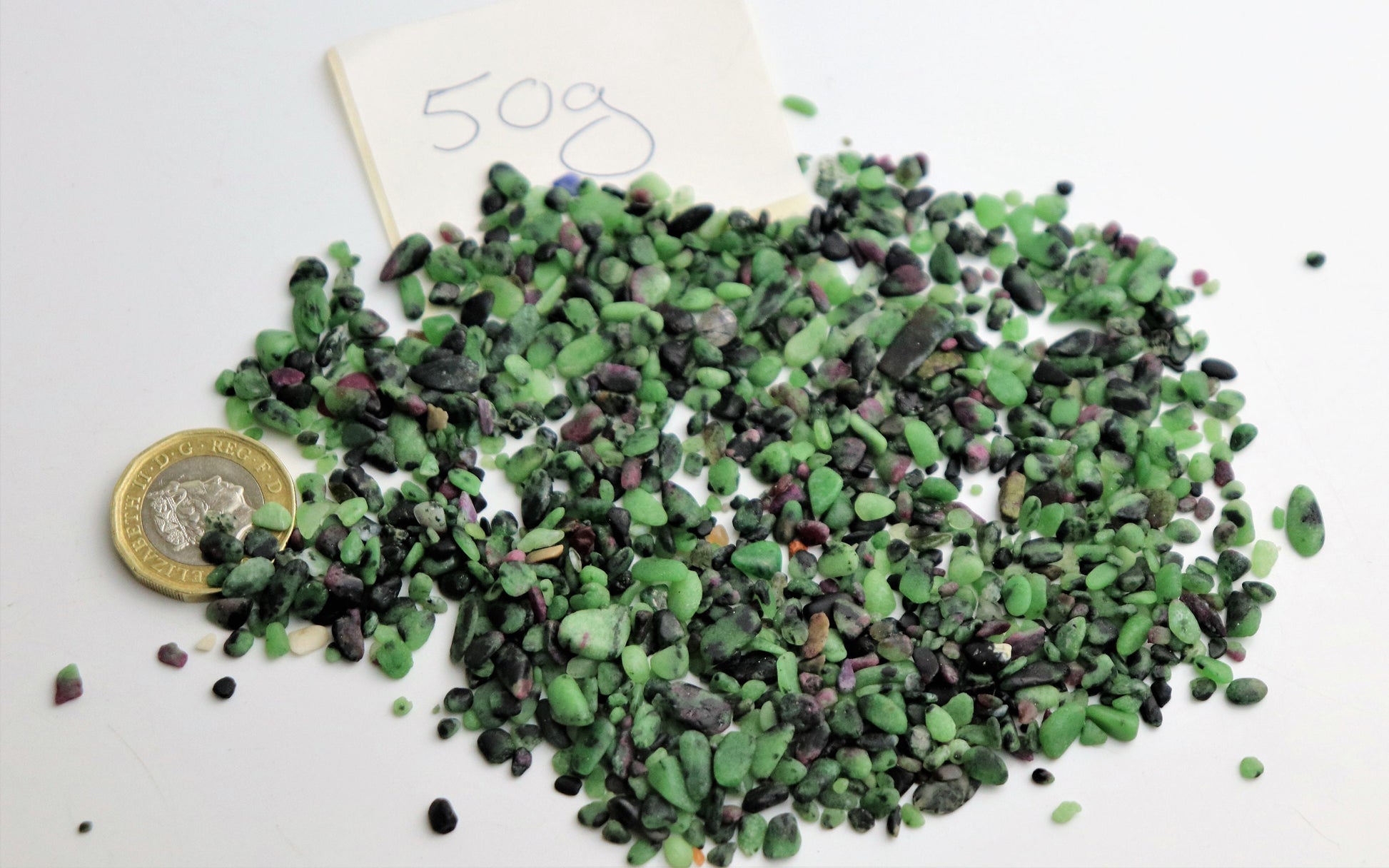 Extra Small Polished Ruby In Zoisite Listing is for 50 grams of extra small natural Ruby in Zoisite polished crystalsSize :  Extra Small pieces - Coin shown for size reference Ideal For Arts & CraftsInternational Customers :  Pay P&P on the first item onlyWe have a very large range of Crystals available to suit all budgets