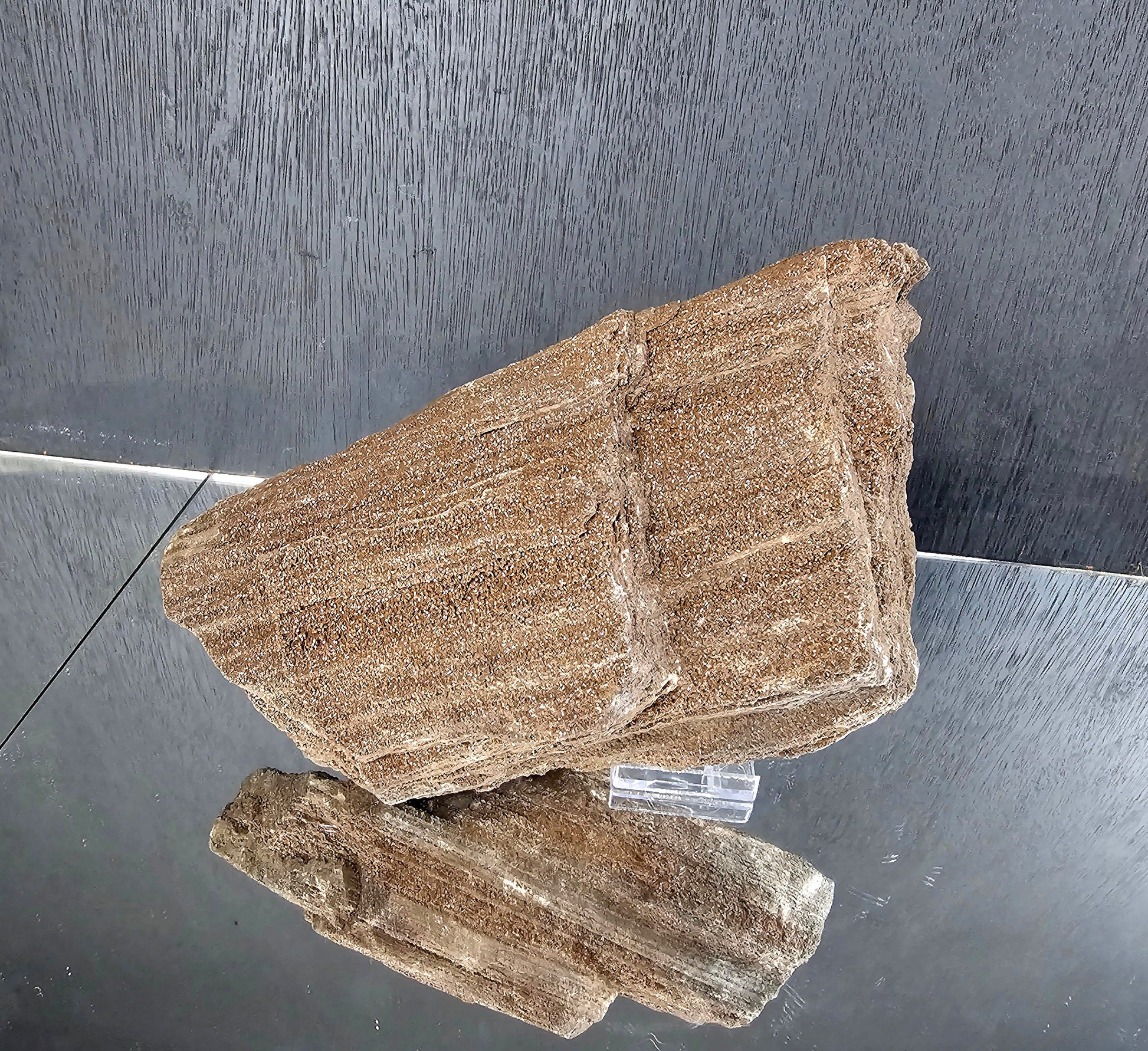 Petrified Wood With Quartz Druzy Outstanding quality covered in Quartz, druzy, would make for fantastic home or office decor a very unique display piece.From Zwenkau, Leipzig , Saxony Germany the site is no longer accessible and the pit has been floodedlarge Size : 20 x 6 x 12 cm Location : Germany Age : 35 Million Years OldWeight : 1.96 KGthis is by far the best batch we have been lucky enough to secure, all pieces have excellent quartz coverage.Petrified Wood : Petrified wood (from the Greek root petro meaning "rock" or "stone"; literally "wood turned into stone") is the name given to a special type of fossilized remains of terrestrial vegetation. It is the result of a tree or tree-like plants having completely transitioned to stone by the process of permineralization. All the organic materials have been replaced with minerals (mostly a silicate, such as quartz), while retaining the original structure of the stem tissue. Unlike other types of fossils which are typically impressions or compressions, petrified wood is a three-dimensional representation of the original organic material. The petrifaction process occurs underground, when wood becomes buried under sediment or volcanic ash and is initially preserved due to a lack of oxygen which inhibits aerobic decomposition. Mineral-laden water flowing through the covering material deposits minerals in the plant's cells; as the plant's lignin and cellulose decay, a stone mold forms in its place. The organic matter needs to become petrified before it decomposes completely.[ A forest where such material has petrified becomes known as a petrified forest.Distinction ~ Excellence that sets someone or something apart from others.