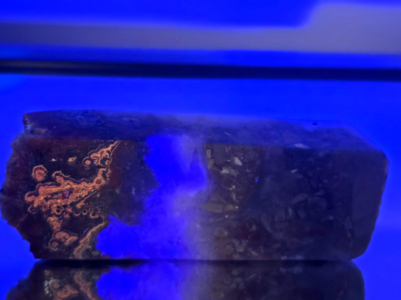 Aouli Imperial Lace BaryteA remarkable specimen from Aouli, Morocco showcasing an exceptionally rare convergence of the district’s most iconic minerals, all naturally intergrown within a single stone.Baryte forms the body of the piece, enriched by zones of fluorite and accented with intricate lace-like patterns of golden pyrite and galena.The galena—Aouli’s signature ore mineral—has partially transformed into delicate lead-oxide phases that glow warmly under UV light, hinting at traces of cerussite.Such a multi-mineral assemblage is highly unusual even for Aouli, where these specimens are typically found separately rather than fused together. The result is a complex, richly textured stone that captures the full mineralogical story of the locality: baryte, fluorite, galena, pyrite, and their vibrant oxidation features, all locked into one dramatic specimen.Size : 10 x 4 x 2cm approx Weight : 223gLocation : Morocco This is a true Aouli composite—rare, visually striking, and deeply representative of the mine’s legendary diversity.You will receive the exact piece pictured Distinction ~ Excellence that sets someone or something apart from others