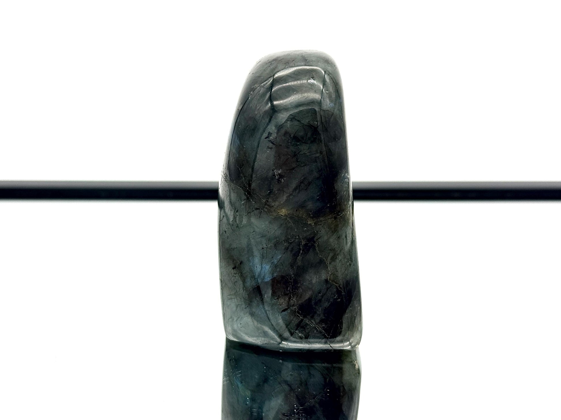 Labradorite crystal fully polished of excellent quality with strong flash Size : H 9 x 7.5 x 4.5 cm approx.Weight : 0.63kgPhotos taken at best angle to show the natural flashYou will receive the exact piece pictured