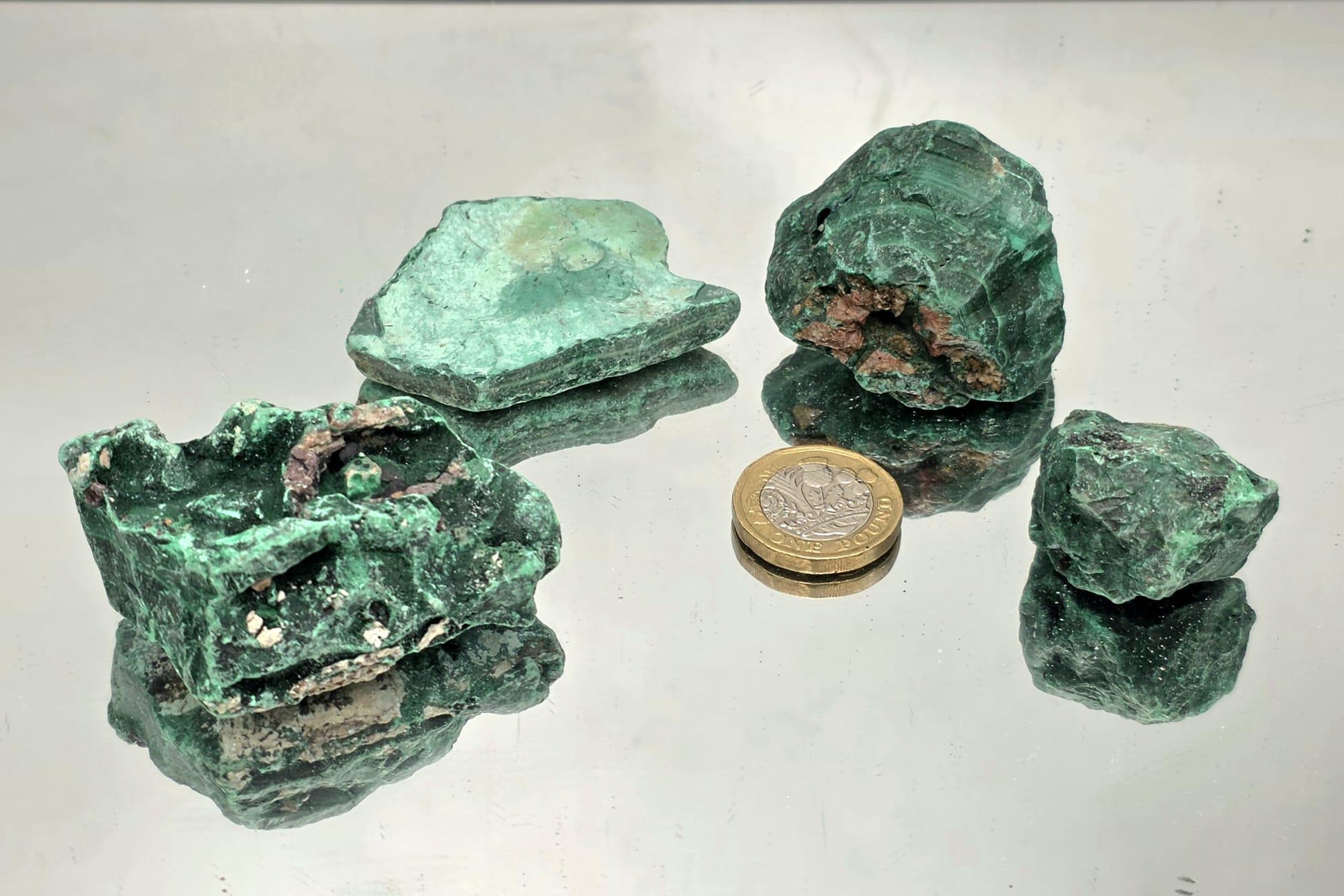 Each 250g batch contains a unique selection of high-grade natural Malachite with vibrant green banding.