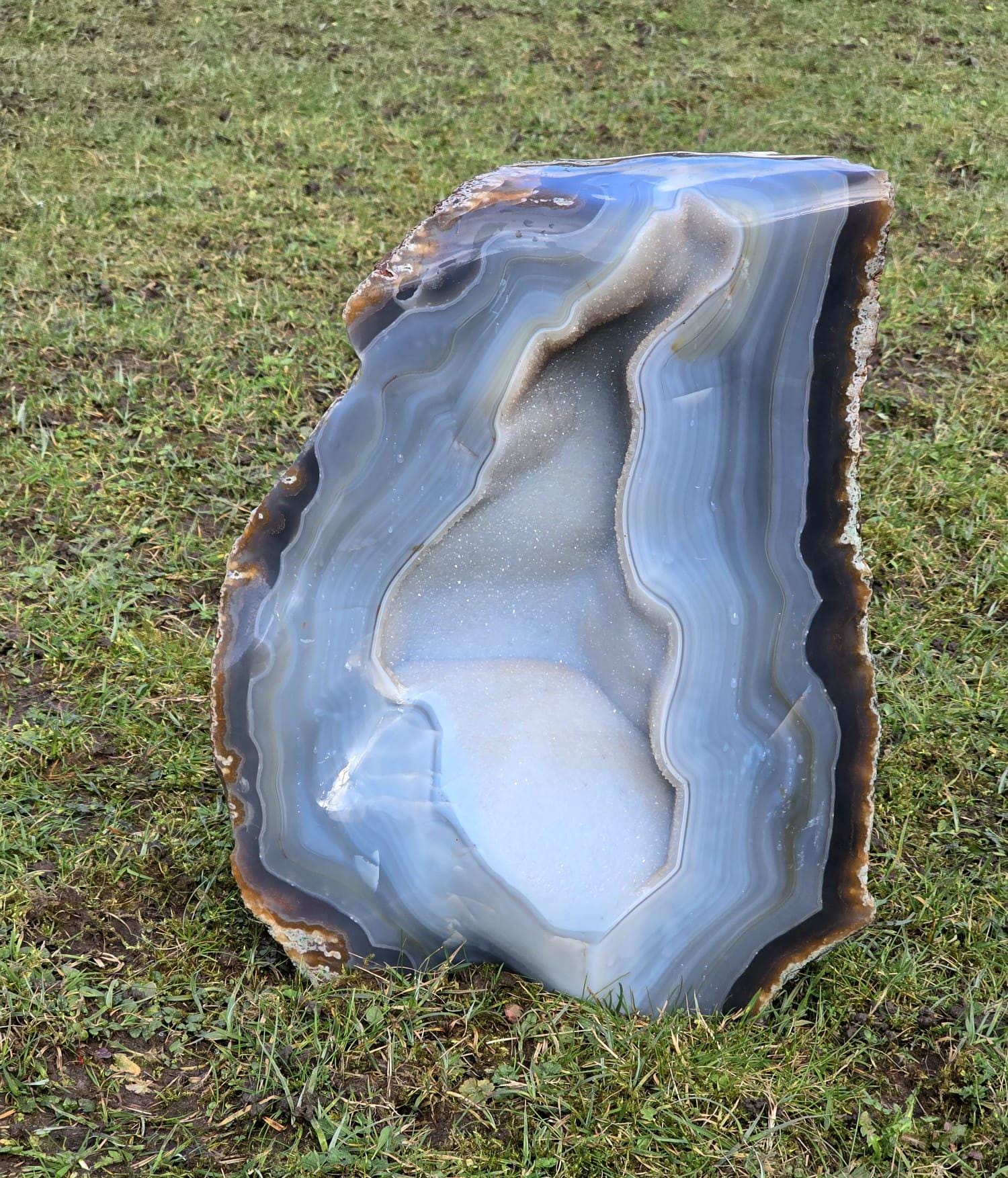 Large Blue Agate Crystal Geode 29.5kg – Polished Natural Madagascar Druze Agate Crystal Display