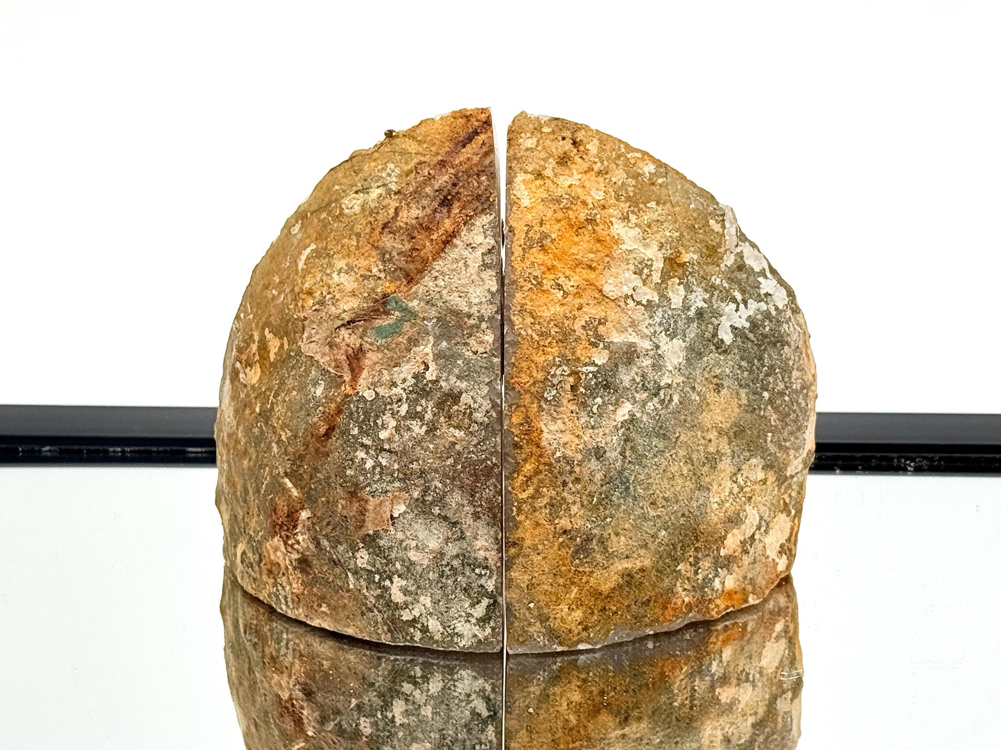 • Size: 9.5 x 12.5 x 5.5 cm (approx. both pieces together) • Total Weight: 0.86 kg (approx. both pieces together) • Origin: Brazil • Finish: Polished front, natural outer edge and back