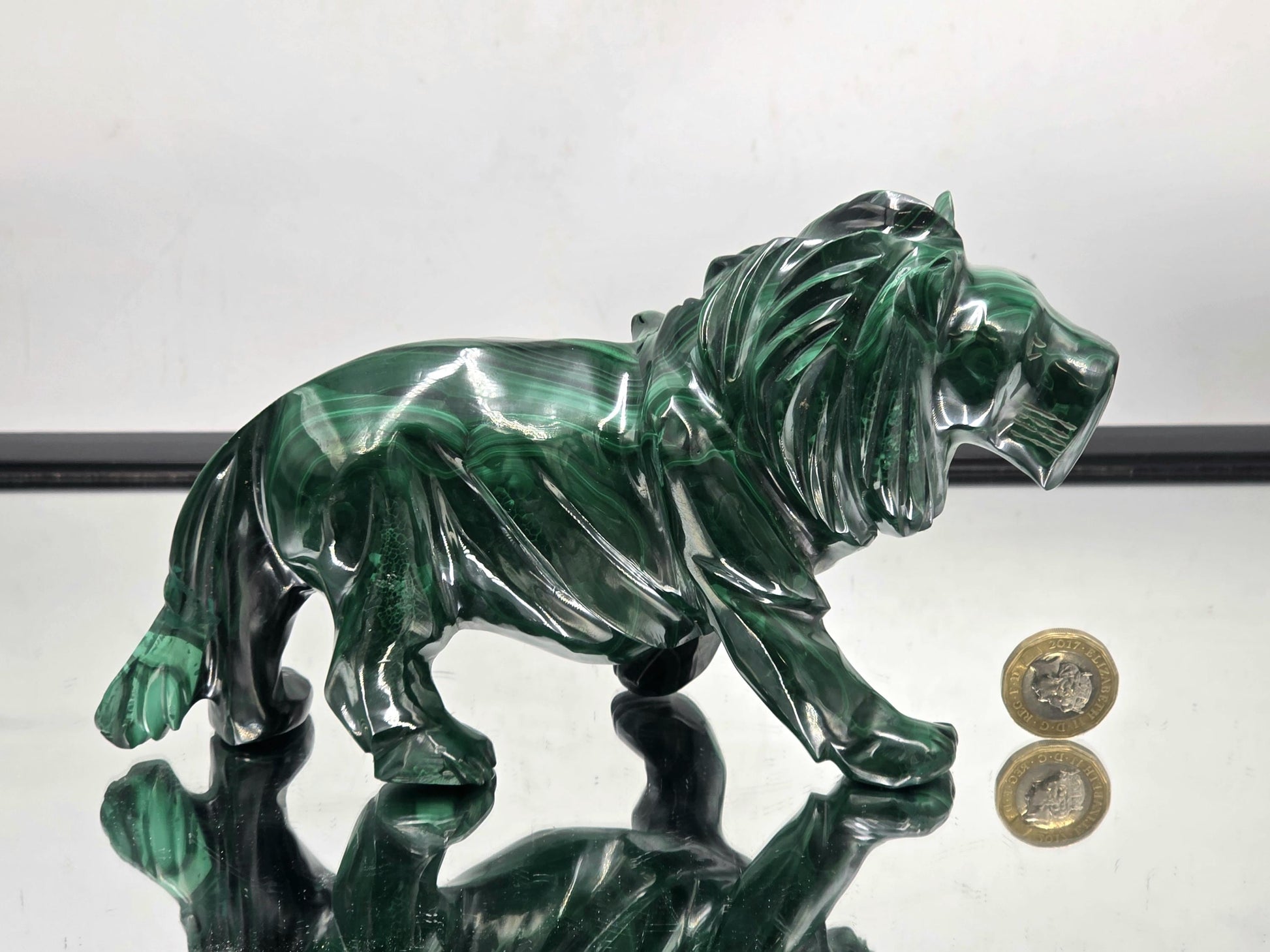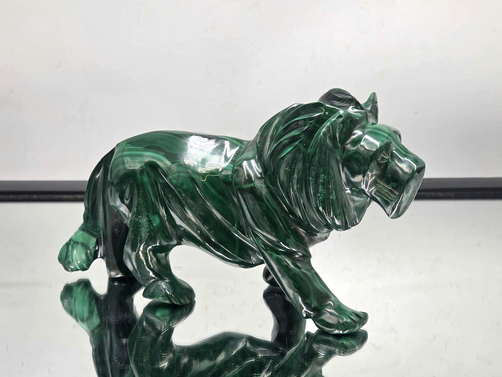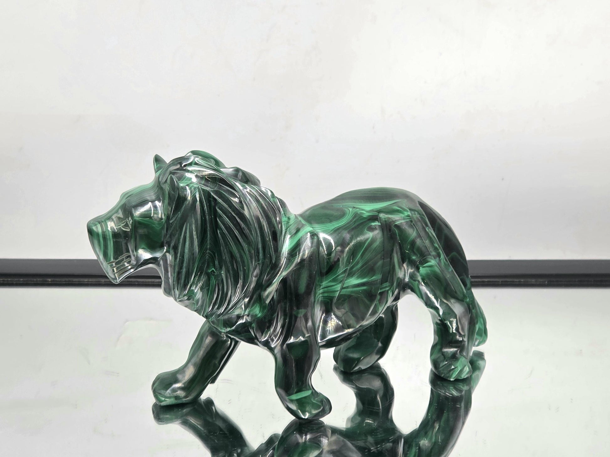 Large Solid Malachite Lion Crystal Carving 1.36KG