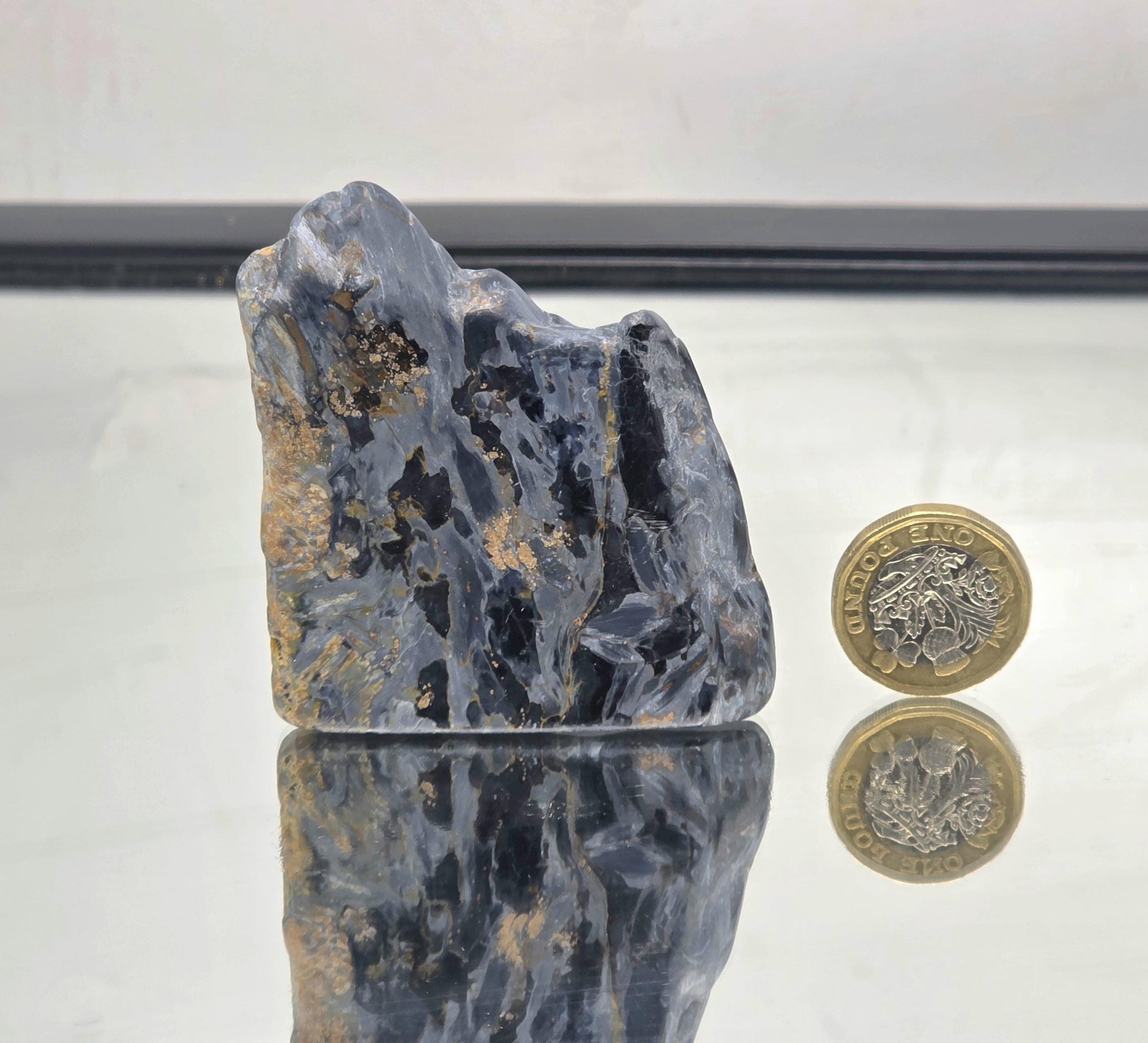 Pietersite & Quartz Crystal Slice with excellent chatoyancy.Material from Namibia Size: 5.5 x 6.5 x 0.8 cm approxWeight: 63gyou will receive the exact piece pictured.
