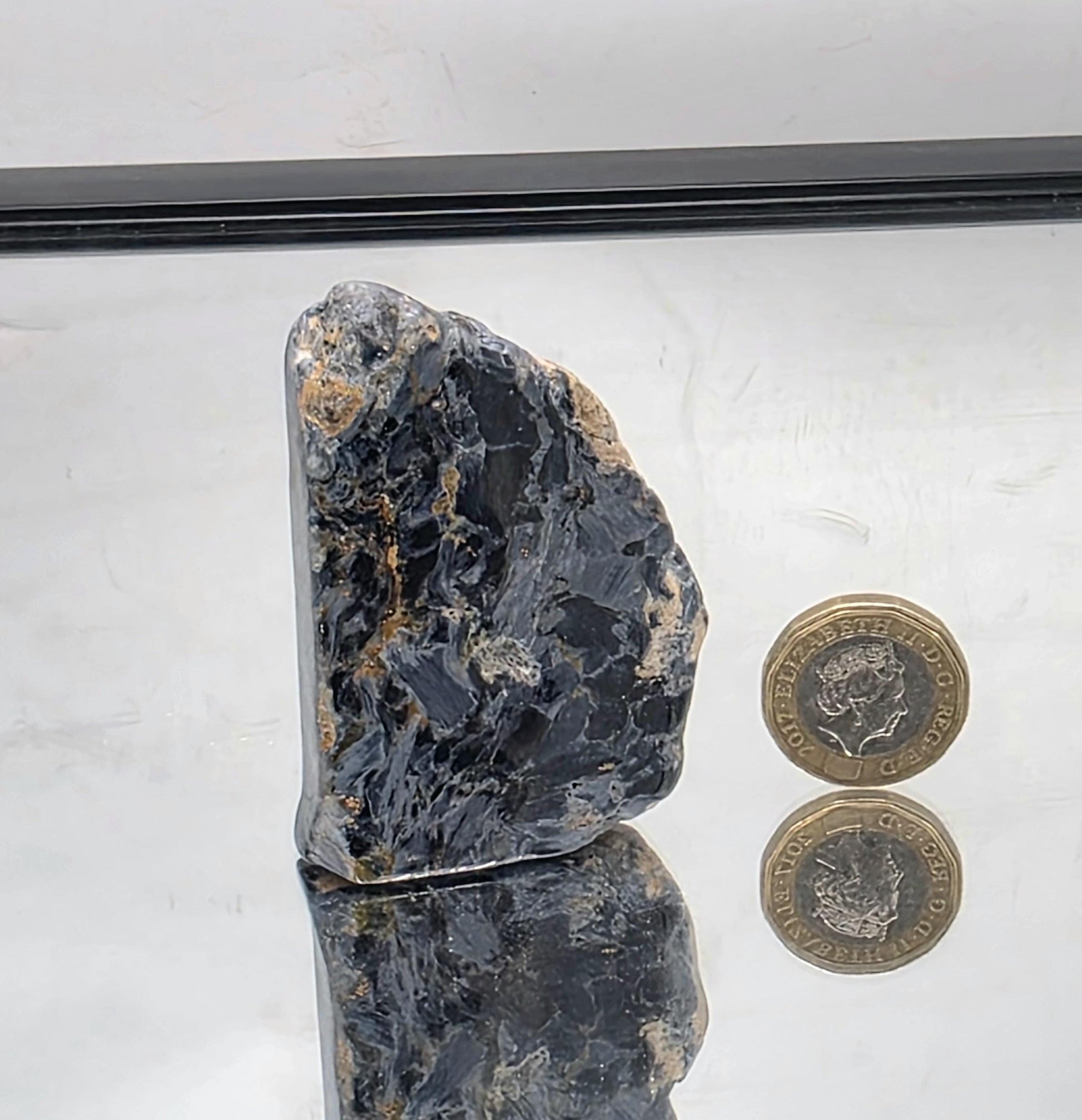 Pietersite & Quartz Crystal Slice with excellent chatoyancy. Polished both faces with rough Polished sides