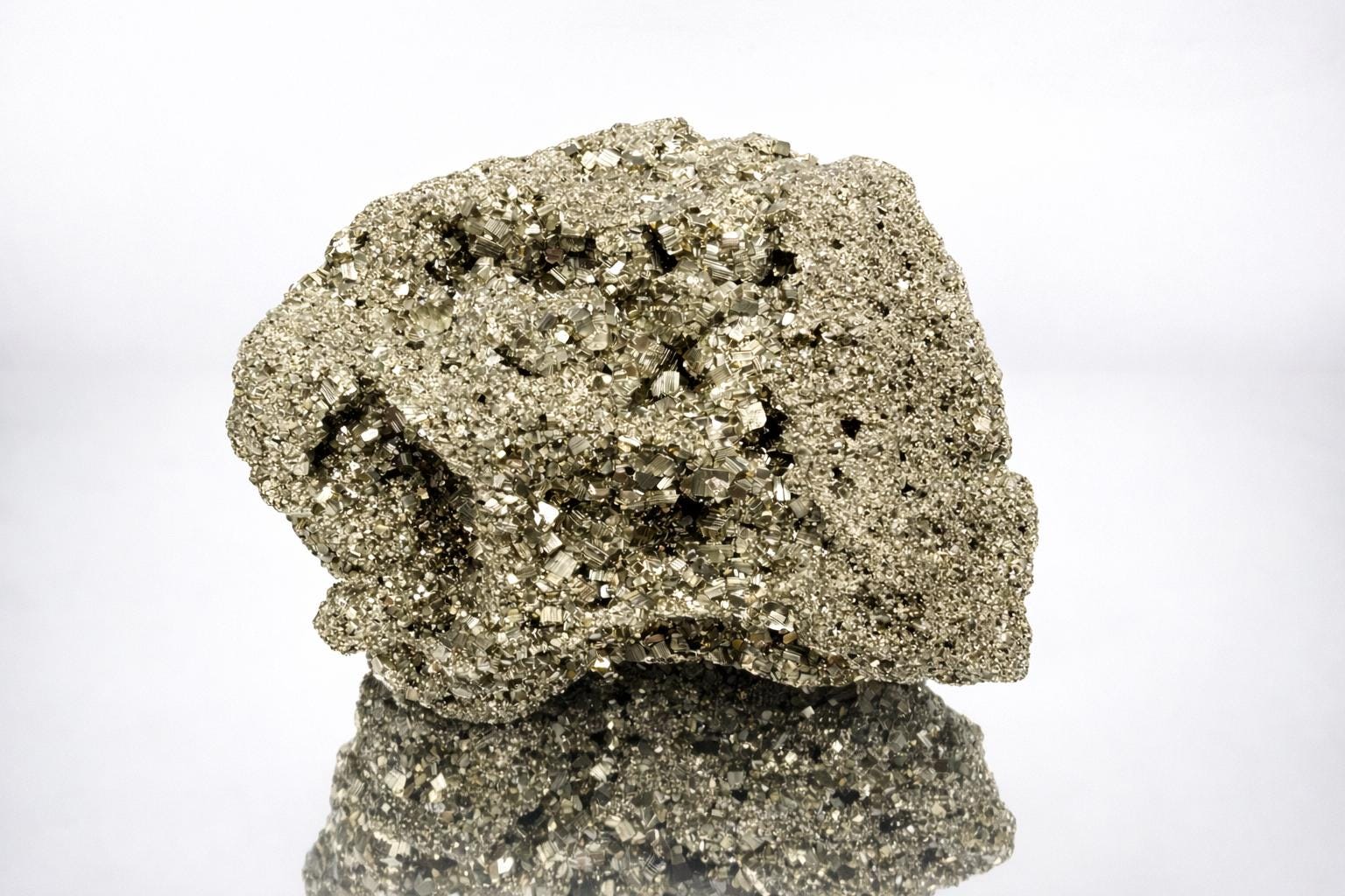 The mineral pyrite, or iron pyrite, also known as fool's gold, is an iron sulfide with the chemical formula FeS2. This mineral's metallic luster and pale brass-yellow hue give it a superficial resemblance to gold, hence the well-known nickname of fool's gold.