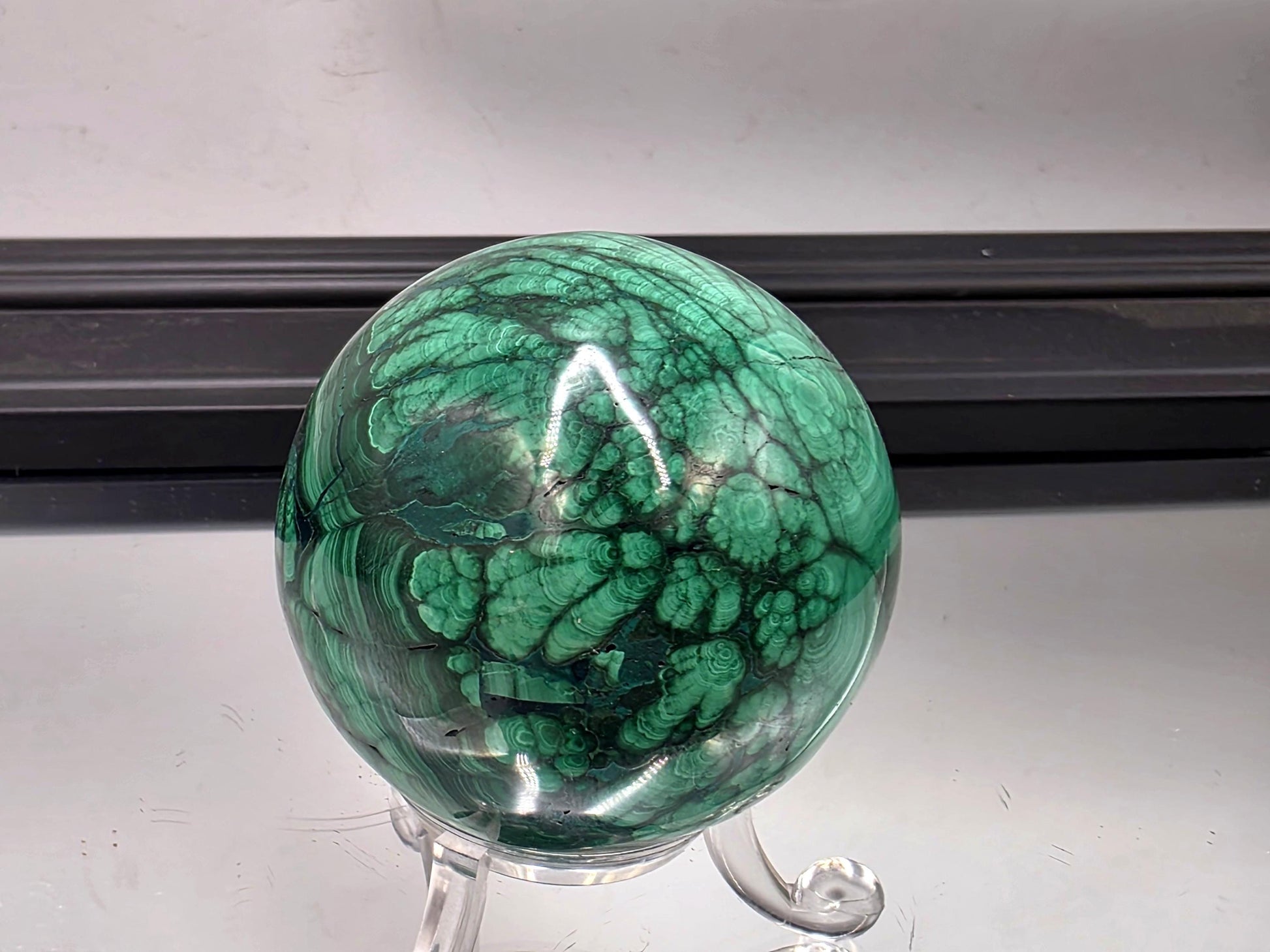 You will receive the exact malachite crystal sphere as pictured.