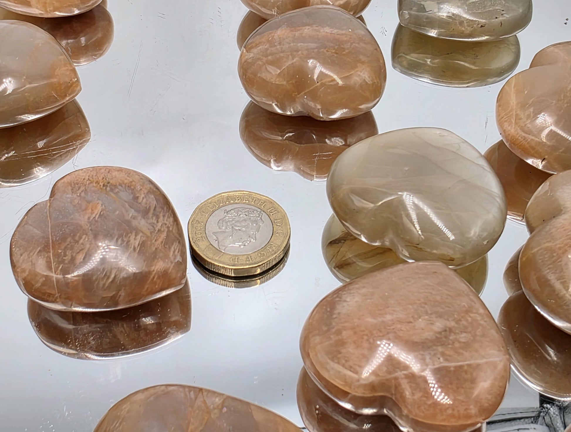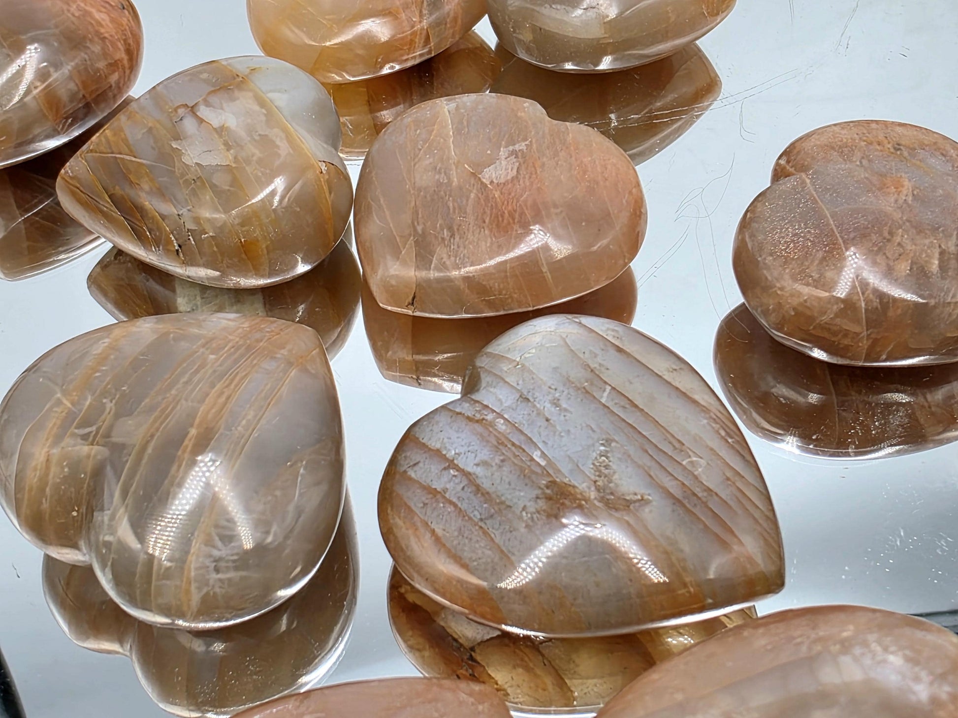 Peach Moonstone Crystal Pocket Heart Of Excellent Quality & Each Piece With Flash
