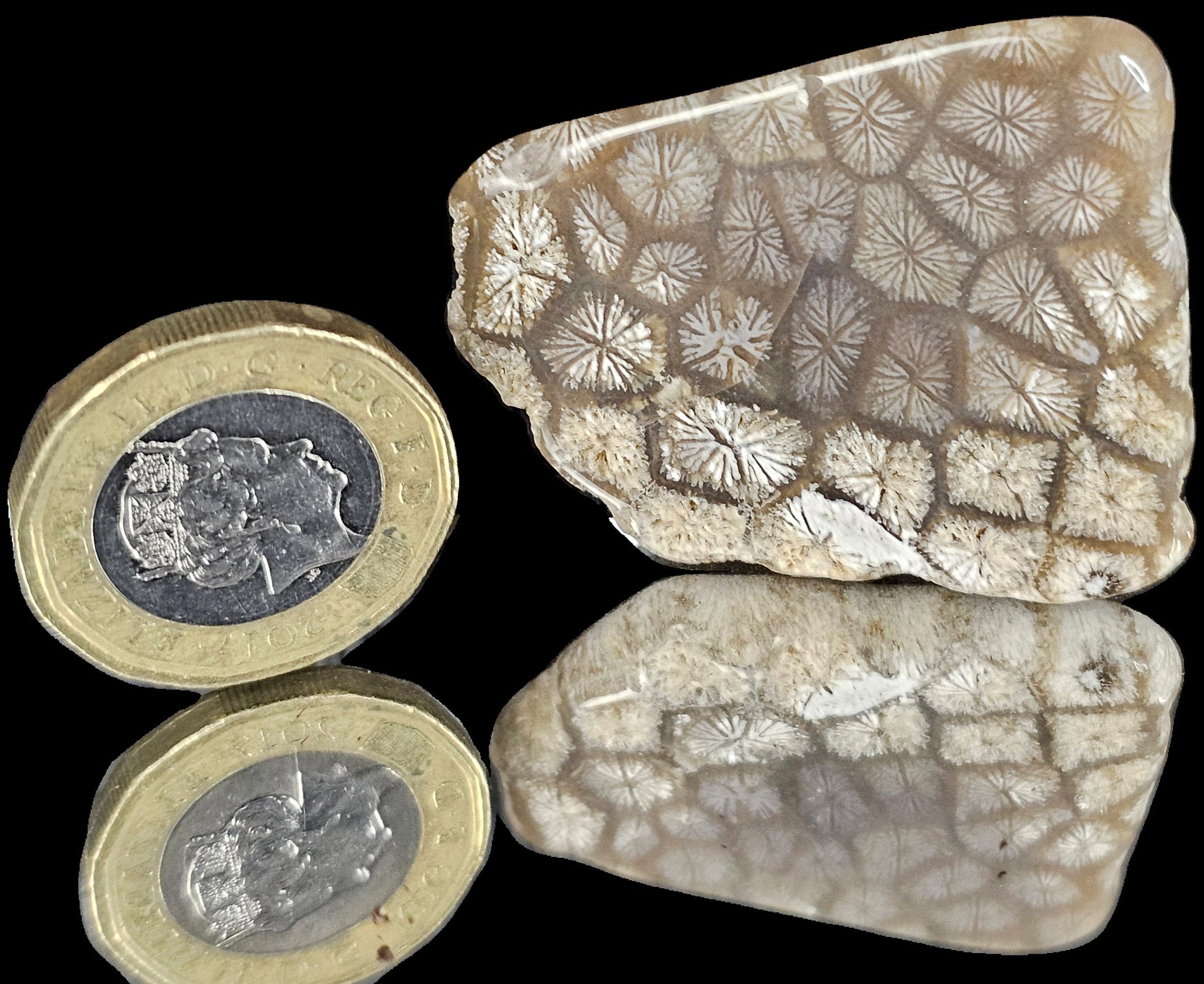 you will receive the exact piece pictured. Every piece has been hand worked and polished by ourselves, revealing as much of the beautiful natural detailing as possible, such as the star detailing of the head of the Coral and also the feather detailing. This is a rare stone and the only locality known worldwide for Agatised Coral from the Jurassic Period. This is a very hard stone to work and as such it is mainly only cabochons available on the market, which have often been sent to China or India to be worked.