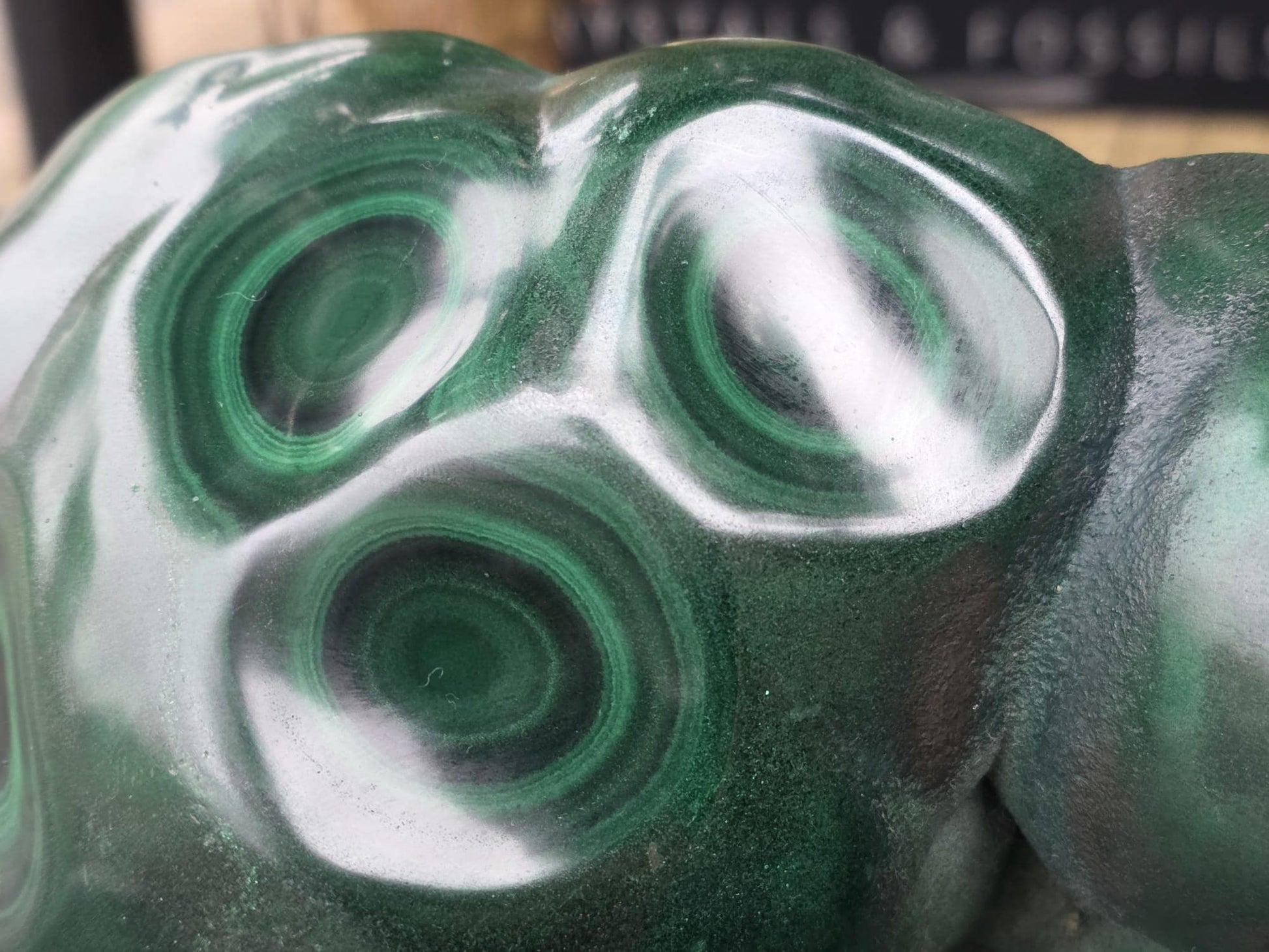 An exceptional XL Malachite crystal showcasing the striking banded green tones and natural patterns that define this remarkable mineral.