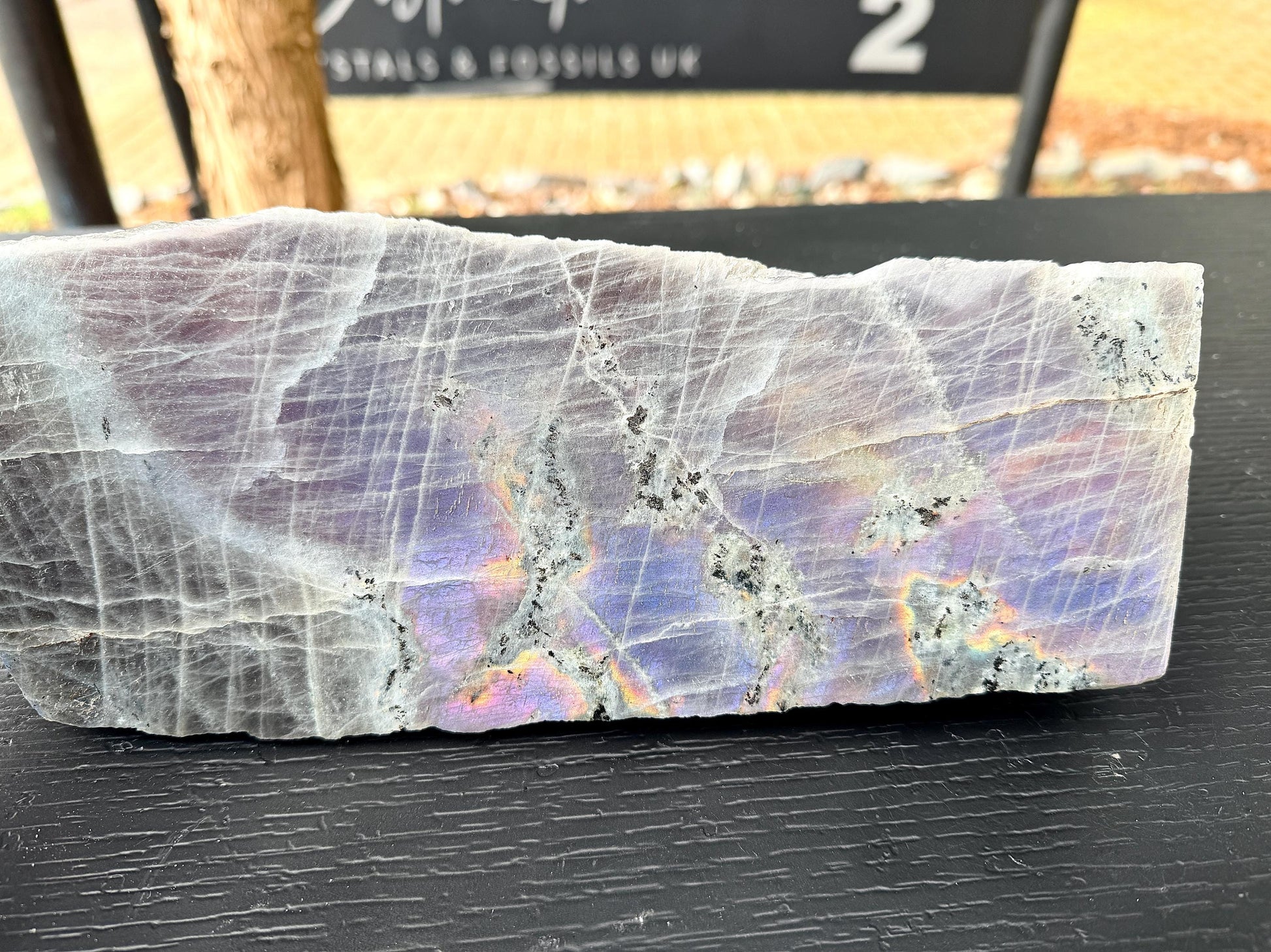 Purple Labradorite Crystal Half Polished with natural Rough back, this is a cut base free standing piece Size : H 34 x 11.5 x 6 cm approx.Weight: 2.80KGLocation : Madagascar You will receive the exact piece pictured